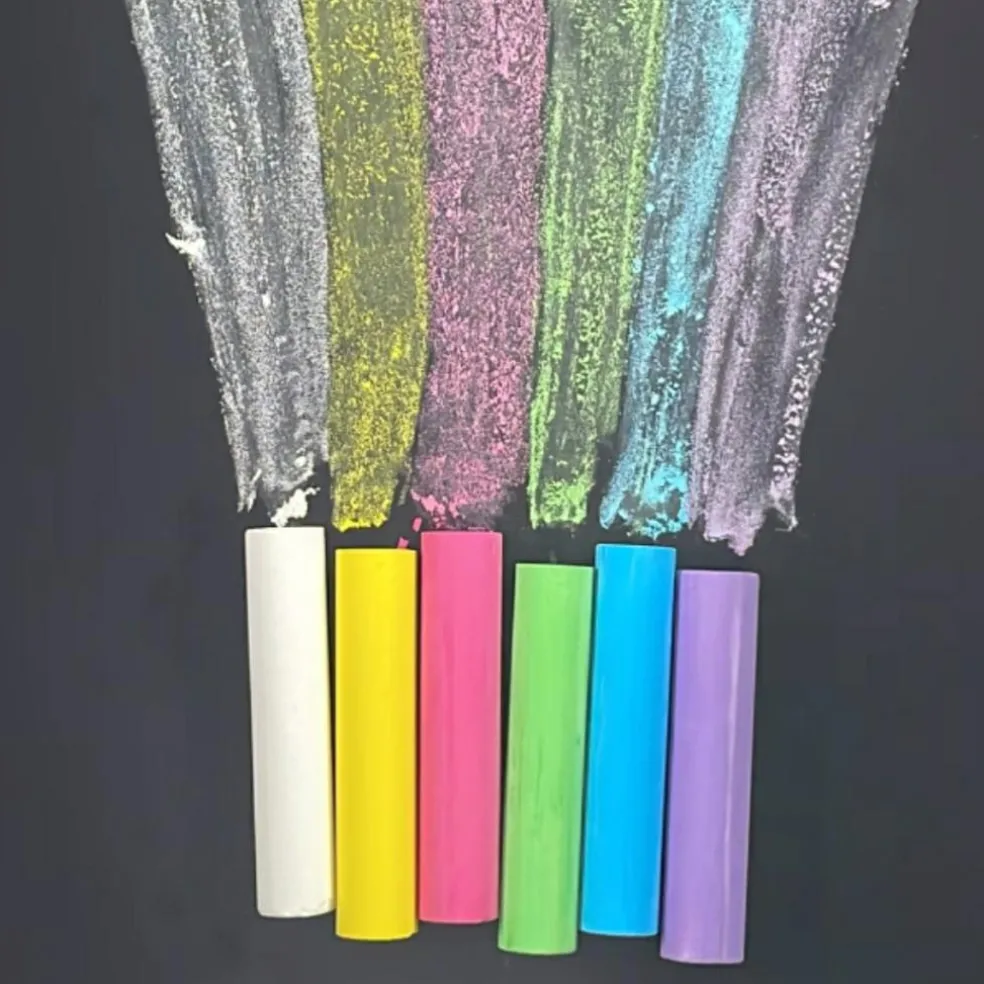 – 6 craies de couleur pour la route blanc, jaune, rouge, vert, bleu, violet.