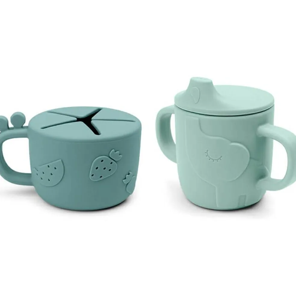 Lot tasse à bec et tasse à goûter Peekaboo Deer friends Bleu