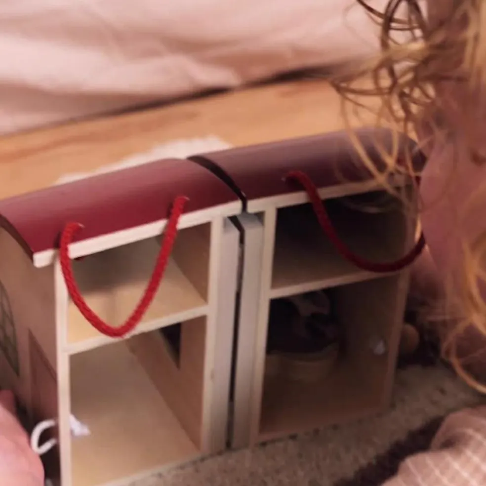 – Cette ferme en bois est conçue avec des poignées pour l’emporter facilement partout.