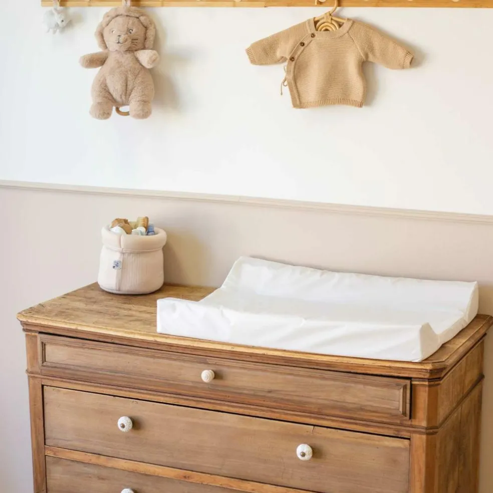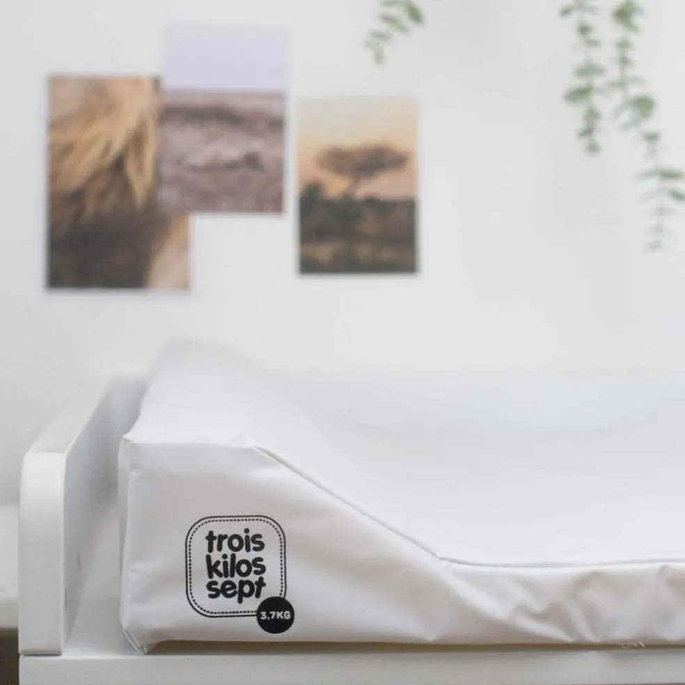 Changez votre bébé en toute sérénité avec le matelas à langer plastifié Blanc Trois Kilos Sept, alliant hygiène, confort et praticité au quotidien.