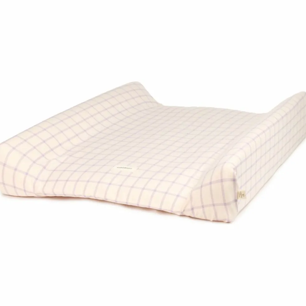 Apportez une touche d’élégance et de confort aux soins de bébé avec le matelas à langer Stories Powder mauve grid de Nobodinoz.