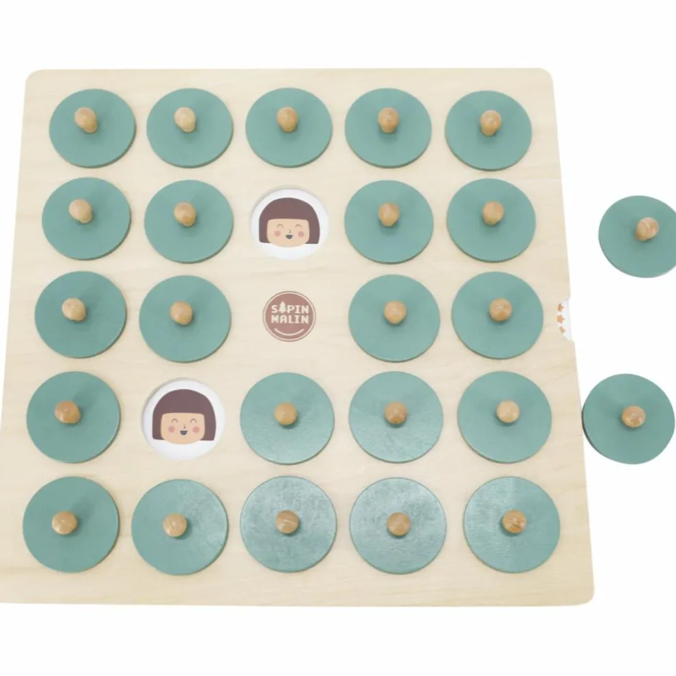 – Grand plateau en bois avec 24 cases, blocs à retirer pour dévoiler les images.