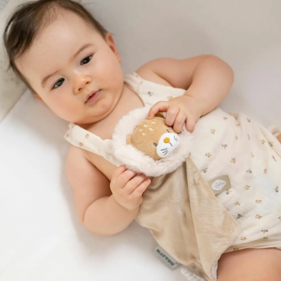 – 2 en 1 : doudou plat et attache sucette.