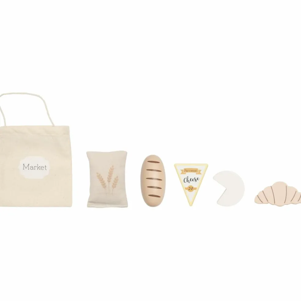 – Inclus : 1 sac en tissu, 1 pot de lavande, 1 pain, 1 brique de lait, 1 bouteille d’huile d’olive, 1 fromage, 1 carotte, 1 oignon, 1 tomate, 1 sac de farine, 1 œuf, 1 poire, 1 raisin, 1 saucisse, 1 viande, 1 poisson, 1 fromage de brie, 1 croissant.