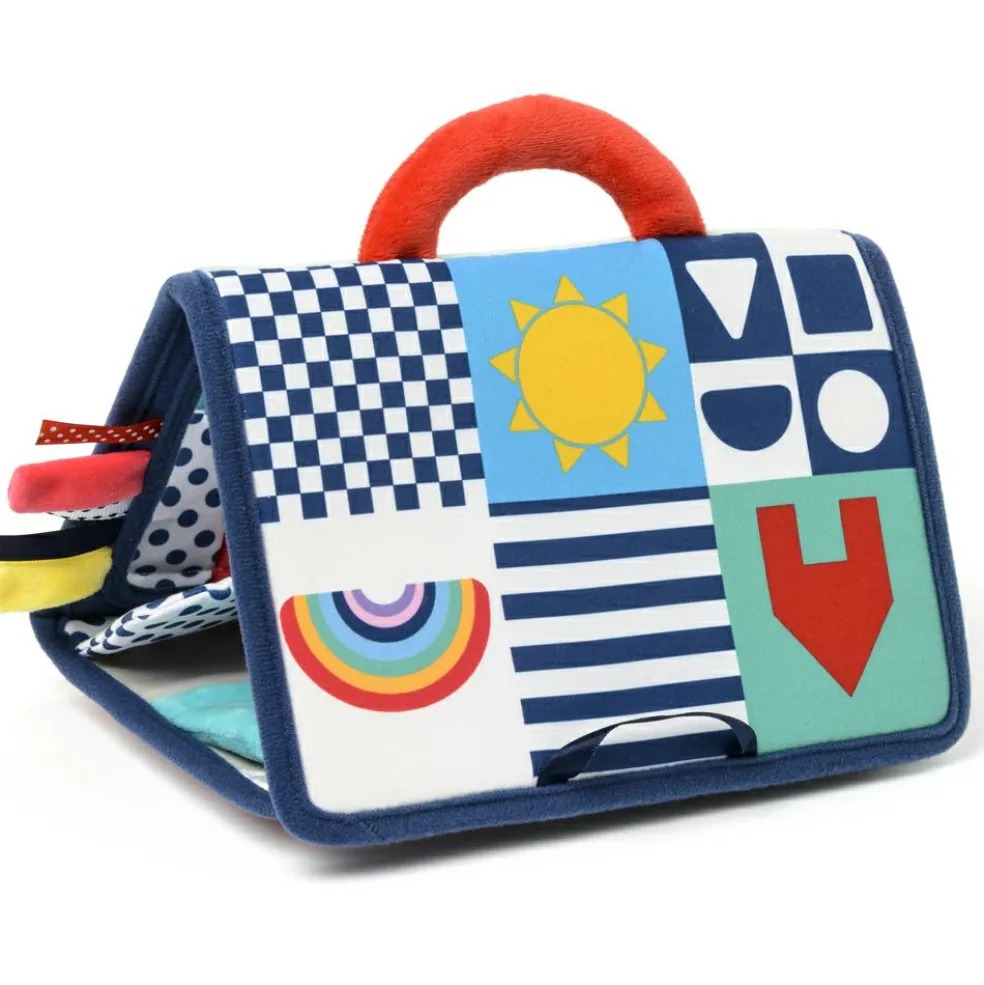 – 6 activités : 1 pochette plastique transparente, 1 mirroir, des languettes colorées, 1 poignée à attraper, du papier bruissant, du papier lenticulaire.