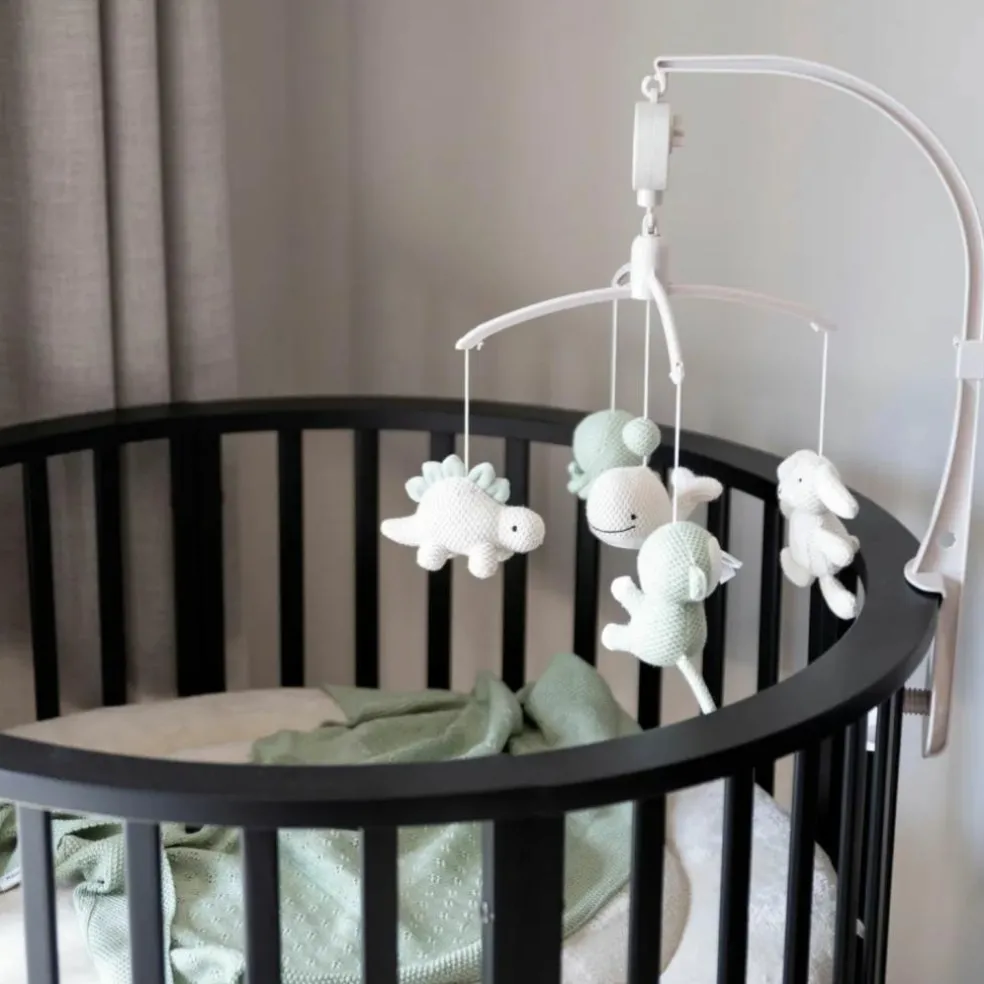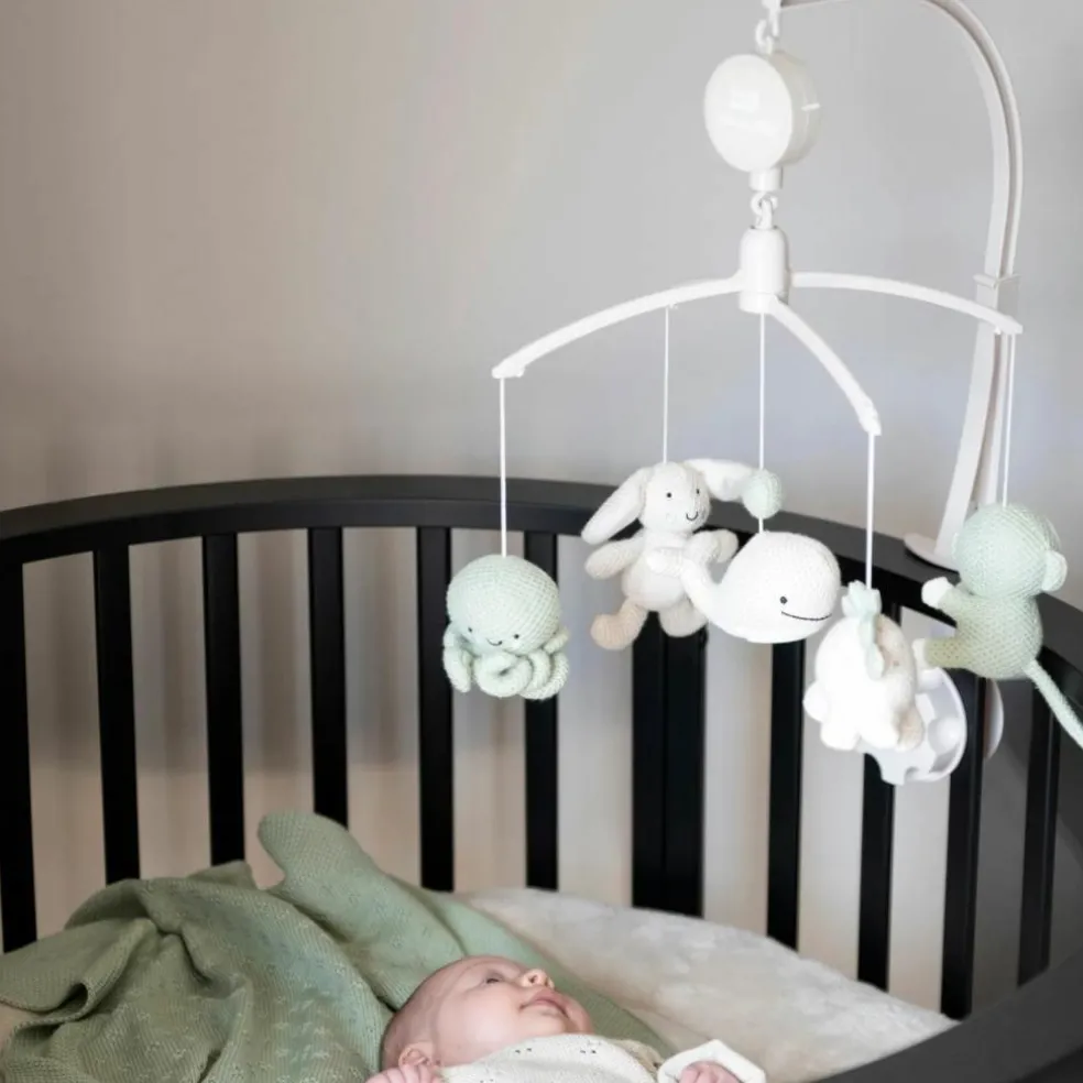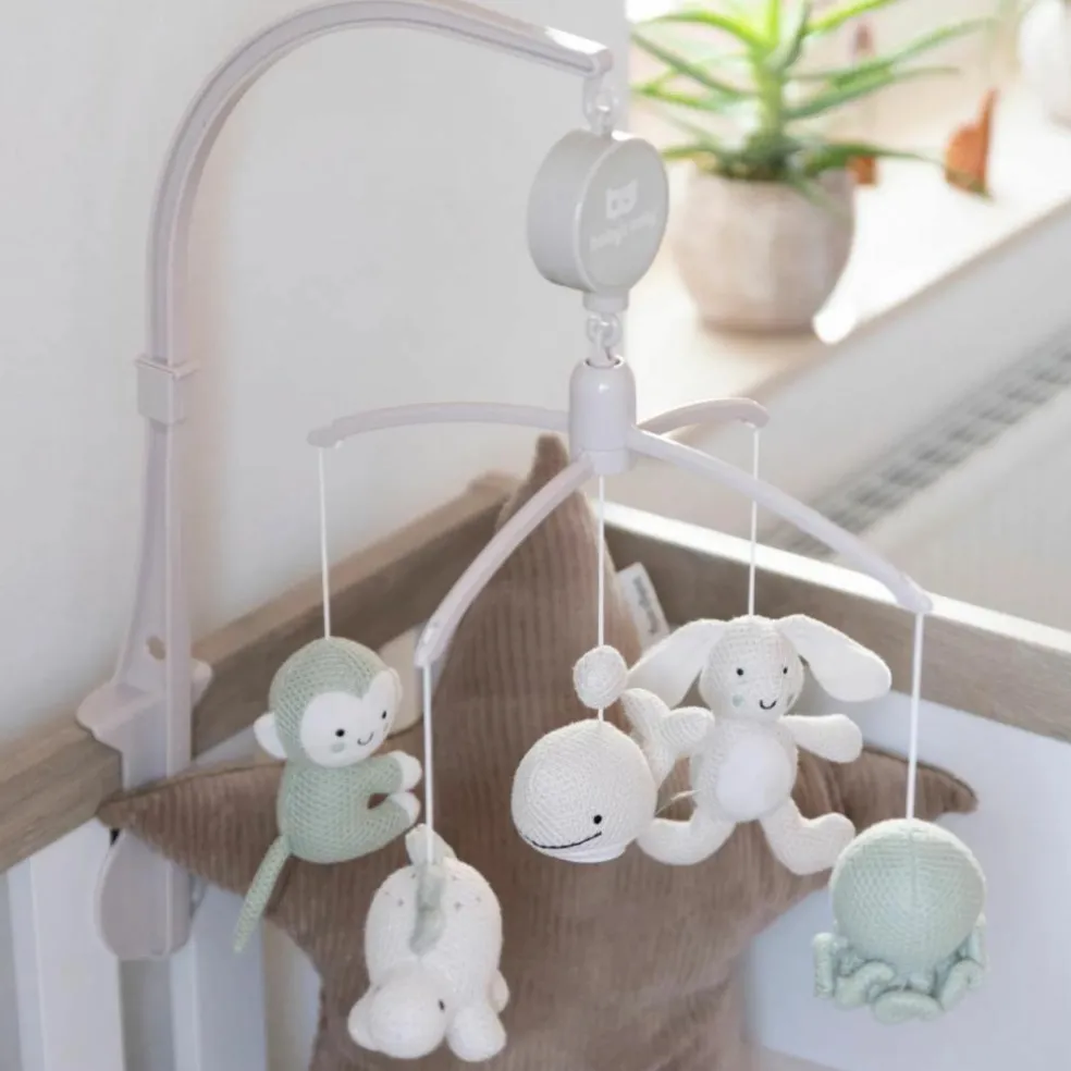 Le mobile musical Animals de Baby’s Only transforme le lit de bébé en un cocon rassurant et féerique. Avec ses petits animaux crochetés dans des teintes douces de vert laurier et de lin chaud, il invite à la rêverie et offre un rituel apaisant au moment du coucher. Dès qu’il s’active, une douce mélodie s’élève… et c’est tout un monde de tendresse qui berce bébé.