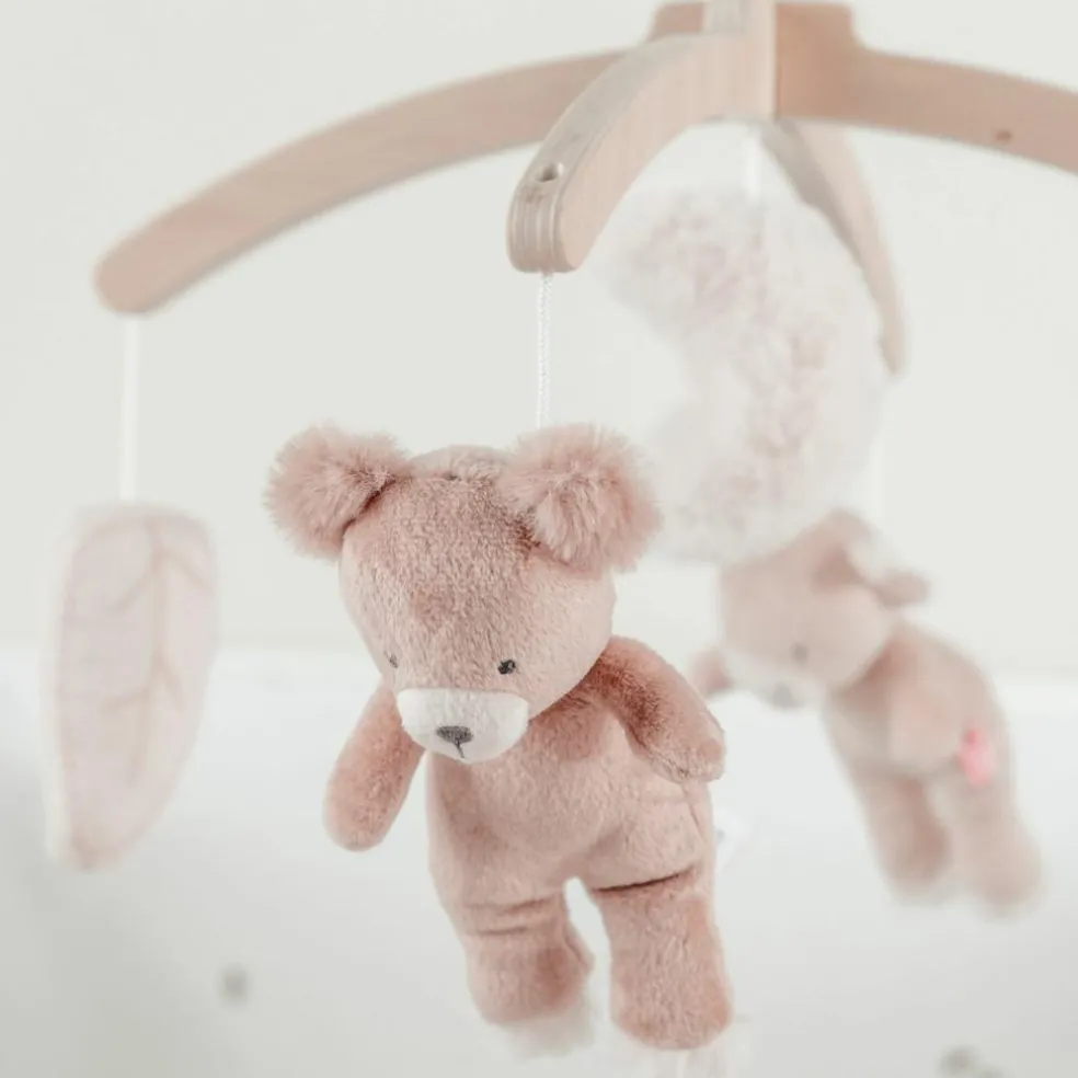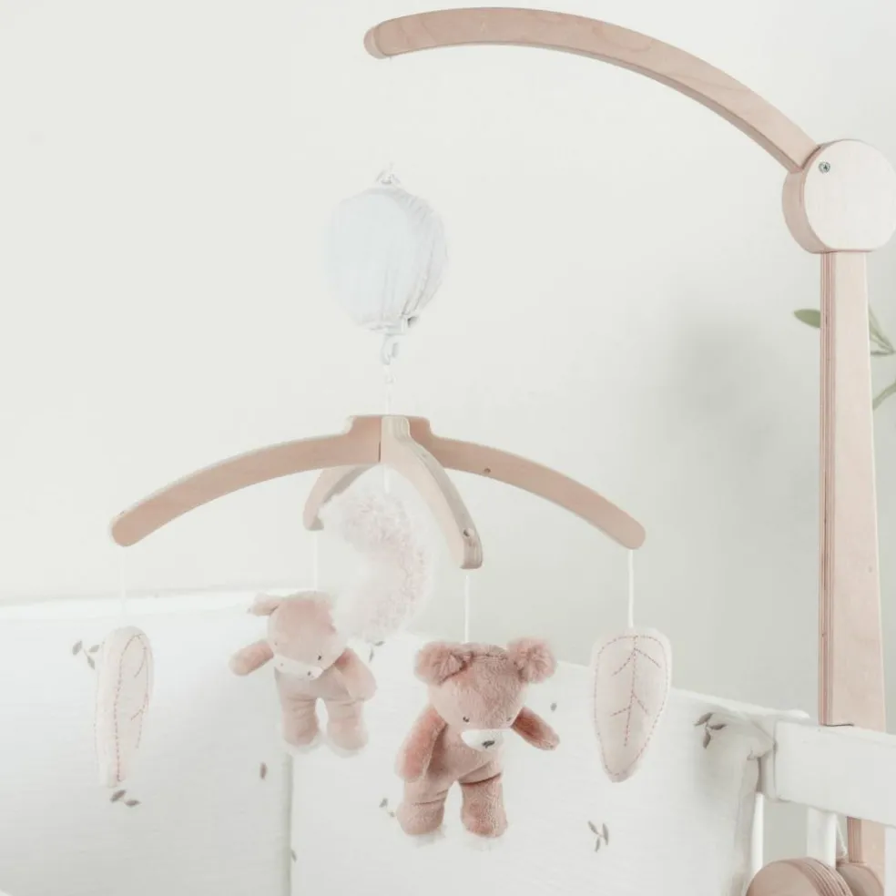Avec ses tons naturels et ses personnages attendrissants, ce mobile musical crée une atmosphère paisible dans la chambre de bébé. Ses petits compagnons – l’ourson et l’écureuil – tournent délicatement au-dessus de lui, accompagnés d’une mélodie tendre, la célèbre Lullaby de Brahms. Parfait pour bercer bébé vers un sommeil apaisé, il devient vite un rituel rassurant et poétique.