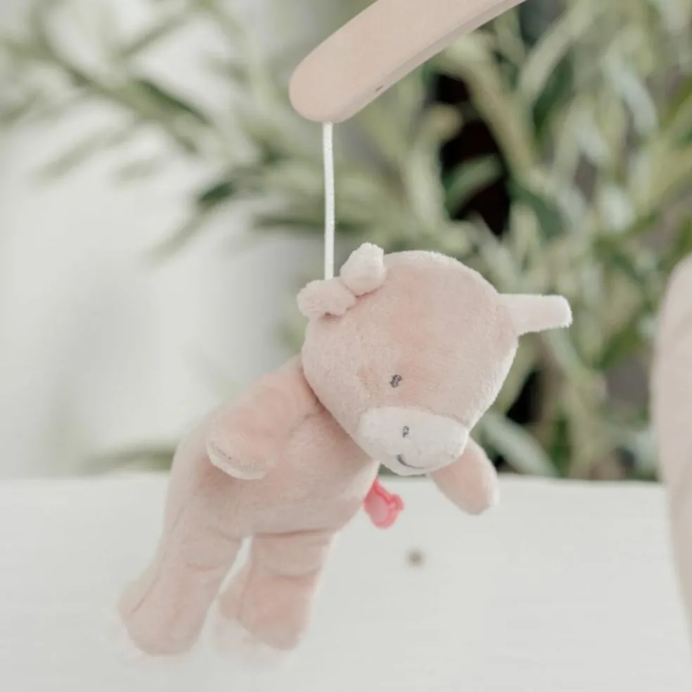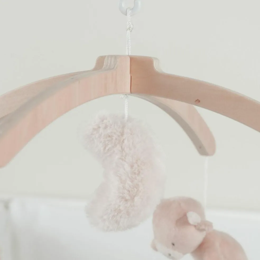 Offrez à votre bébé un univers doux et rassurant avec le Mobile musical en bois Lily et Fluffy.