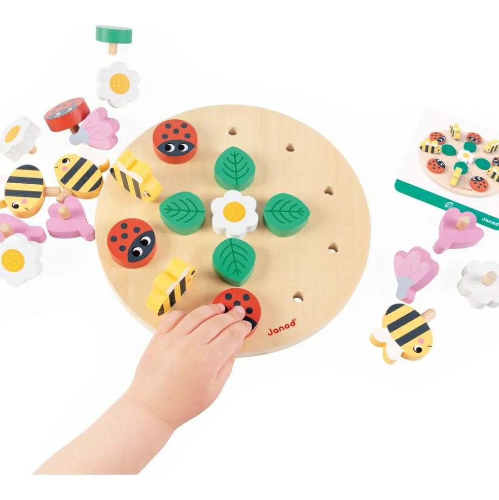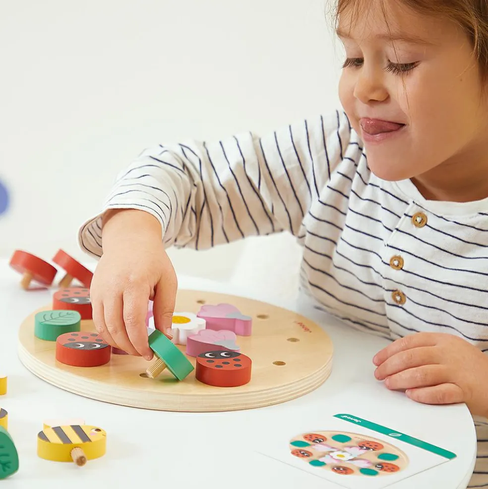 – Comprend 5 marguerites en bois, 5 fleurs roses en bois, 5 feuilles en bois, 5 coccinelles en bois, 5 abeilles en bois, 1 plateau en bois, 6 cartes modèles, 1 notice.