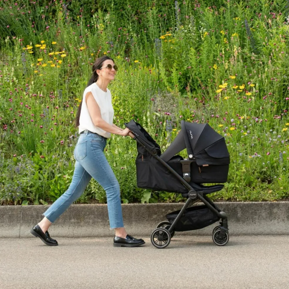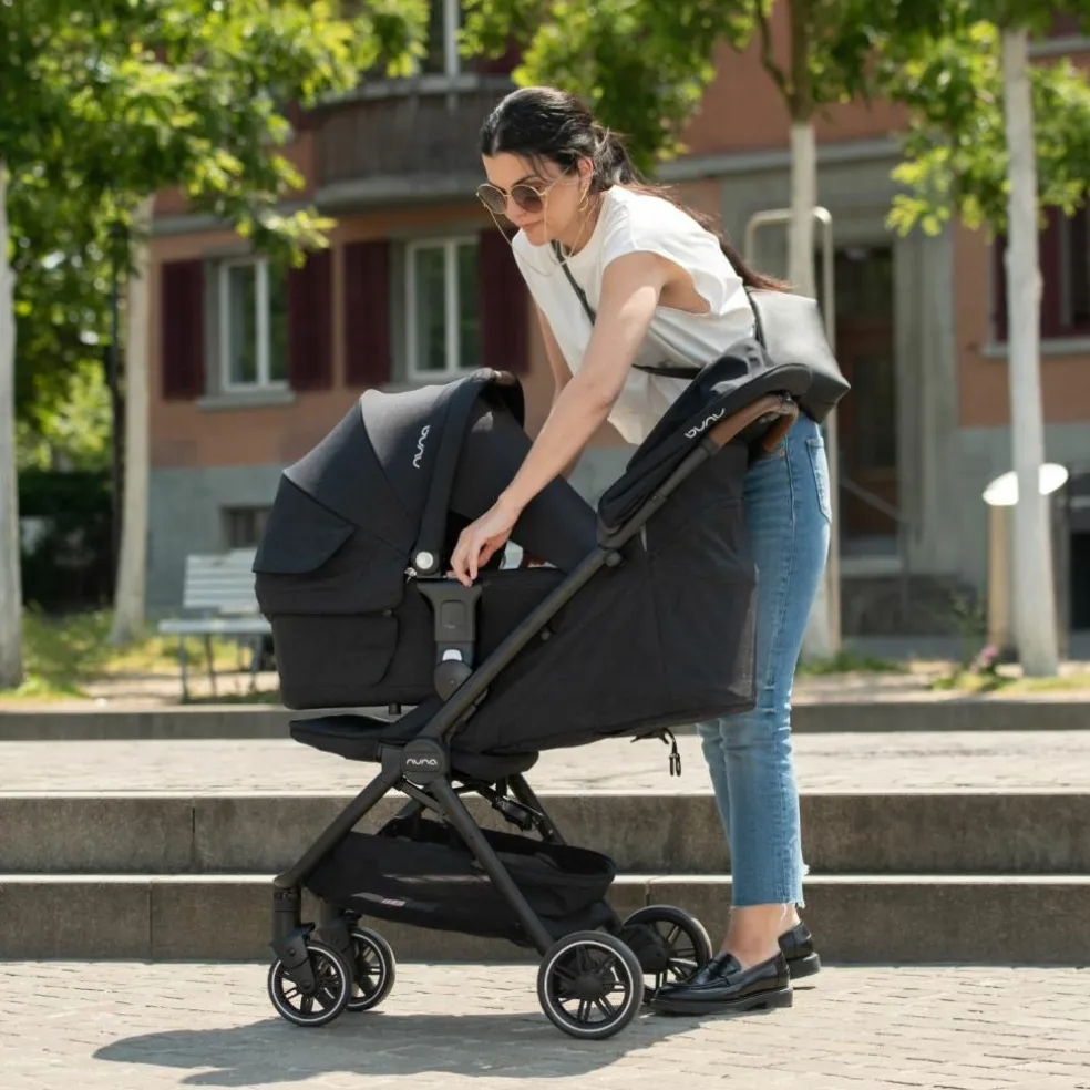 Le canopy UVB 50+, le Dream drape™ emblématique de Nuna et l’habillage pluie inclus offrent plus de protection contre les éléments et permet de belles siestes ininterrompues. Les boutons à mémoire de forme et la poignée de transport en effet cuir surpiqué cousue à la main sont conçus pour détacher la nacelle du châssis de la poussette très facilement – parce que les nouveaux parents méritent de profiter, et pas de batailler avec l’équipement.