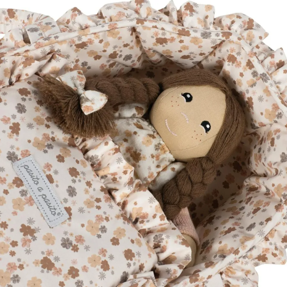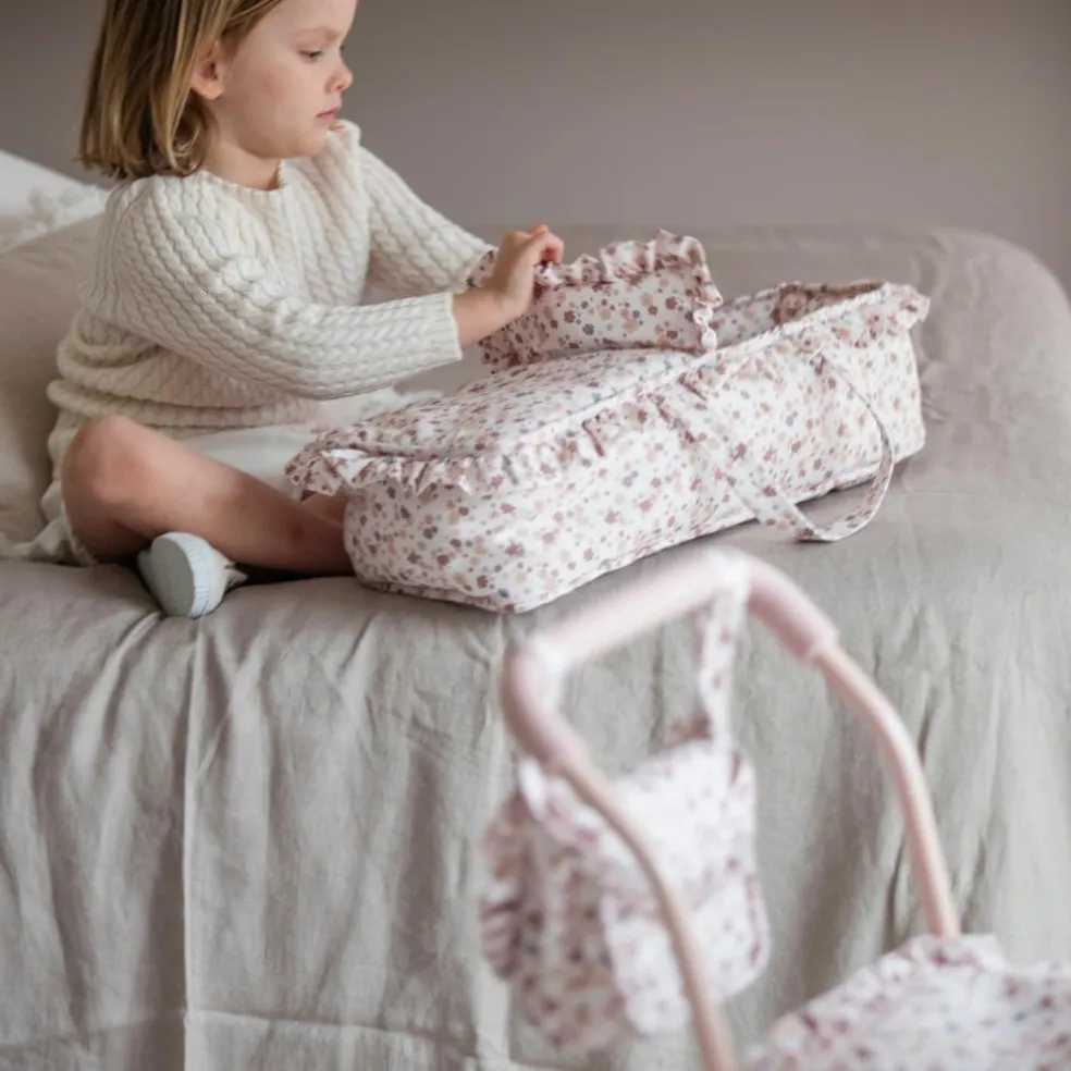 – Nacelle en tissu Somerset avec impression de fleurs multicolores et poignées pour transporter vos poupées pendant leur sommeil de la manière la plus simple qui soit.