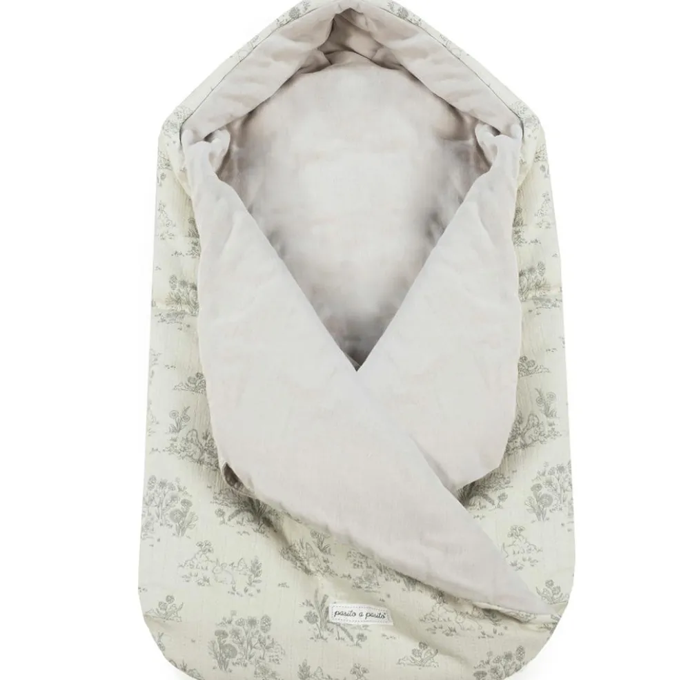 Offrez un cocon de douceur à votre tout-petit avec le nid d’ange avec capuche Toile de Jouy Cream de Pasito a pasito !