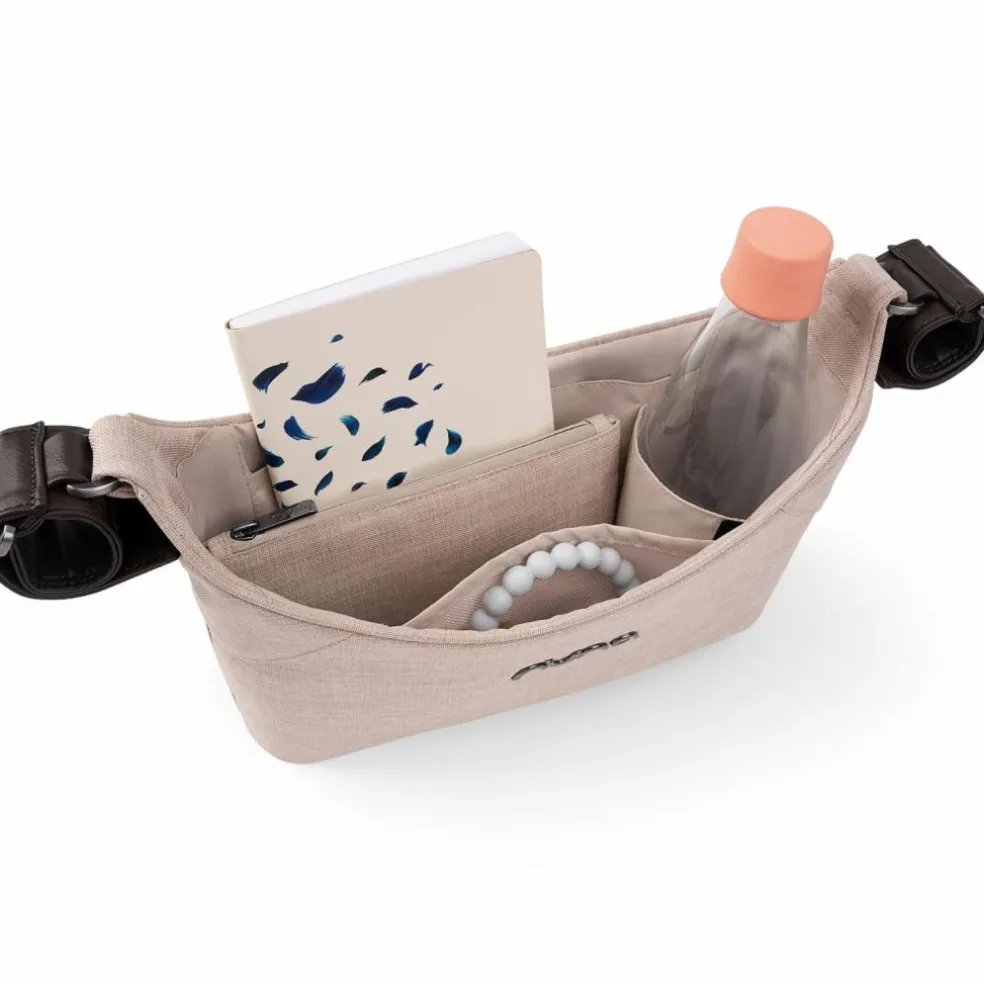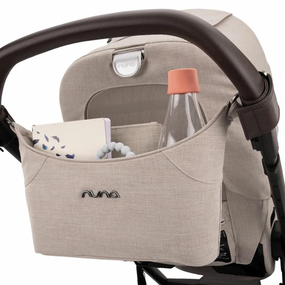 Chaque chose à sa place. L’organiseur de poussette Nuna permet de garder tous les accessoires des parents à portée de main, tout en offrant un peu de repos bien mérité à vos épaules et à votre dos.