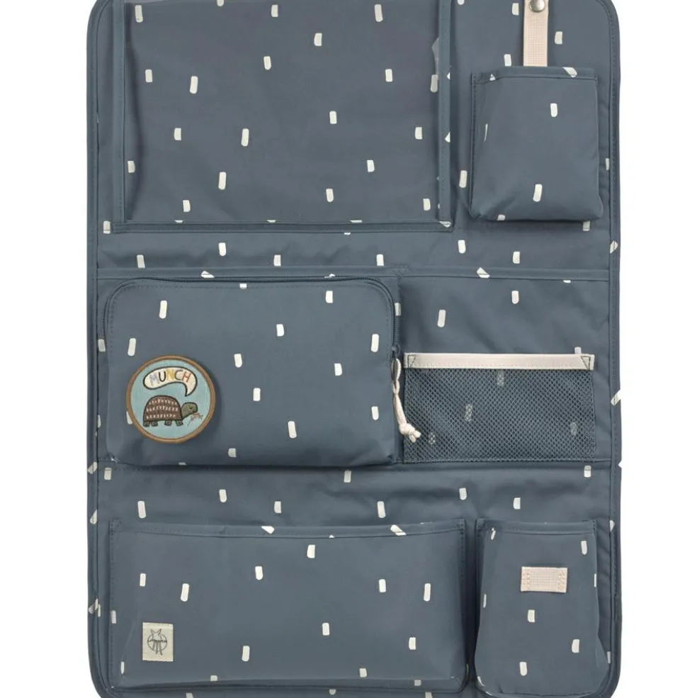 – Nombreux compartiments fonctionnels, avec des fermetures auto-agrippantes ou zippées : permettent de bien ranger les doudous, les jouets, les goûters, etc.
