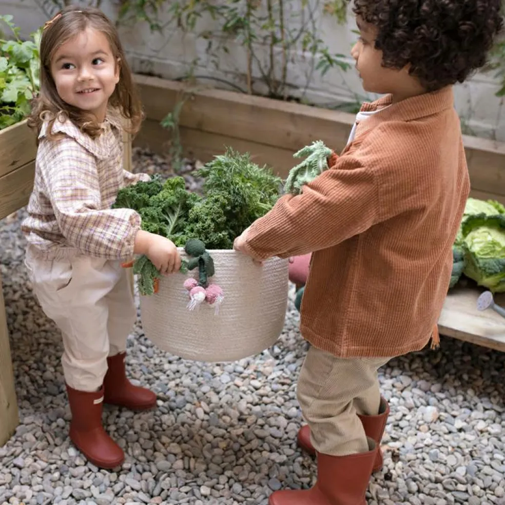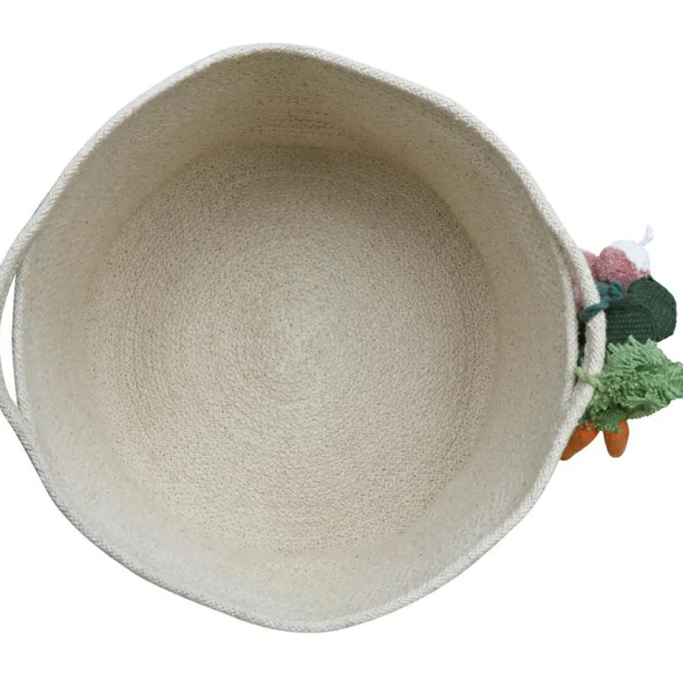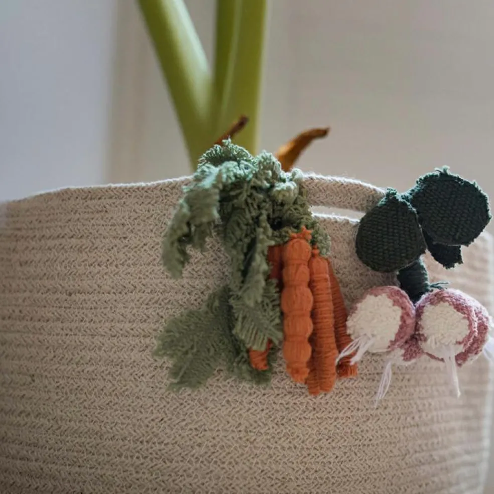 – Décoré de 2 fagots de légumes faits à la main attachés à l’une des anses.