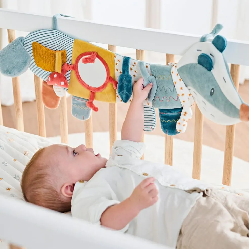 – Multiactivités : avec papier froissé, hochet, étiquettes, pouet et miroir.