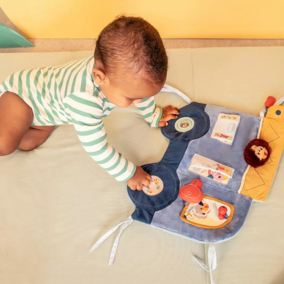 – Avec ses divers surprises visuelles, tactiles ou sonores, ses matières variées et colorées, ce jouet est un vrai atout pour l’éveil de bébé.