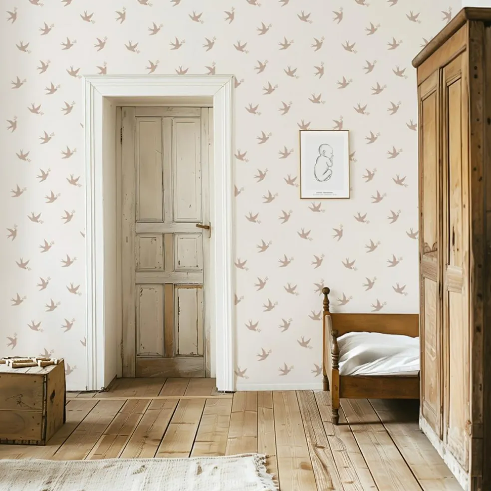 – Raccord sauté : Un papier peint avec un raccord sauté signifie que le motif se répète non pas d’un lé sur le suivant, mais tous les deux lés.