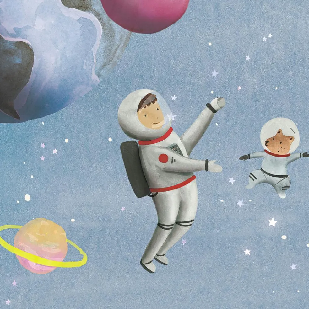 – On s’envole vers l’infini et au-delà avec ce papier peint qui va transformer la chambre en galaxie.