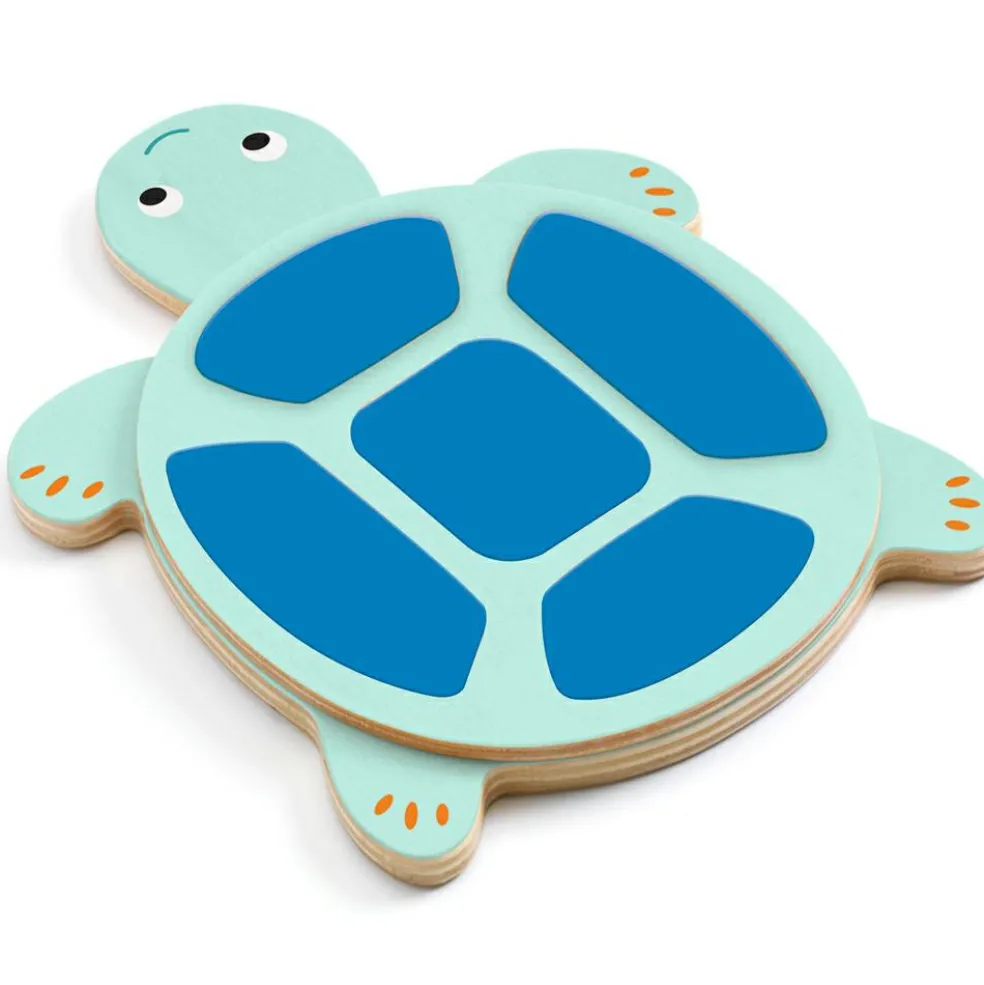 – L’enfant étale, coupe la pâte à modeler pour décorer la tortue.