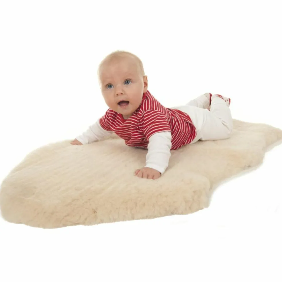 La peau d’agneau écrue de la marque Kaiser est un réel régulateur de température naturel en toutes saisons : il y fait frais en été et chaud en hiver ! La peau d’agneau accompagne votre enfant partout, en poussette, au parc ou comme tapis de jeu.