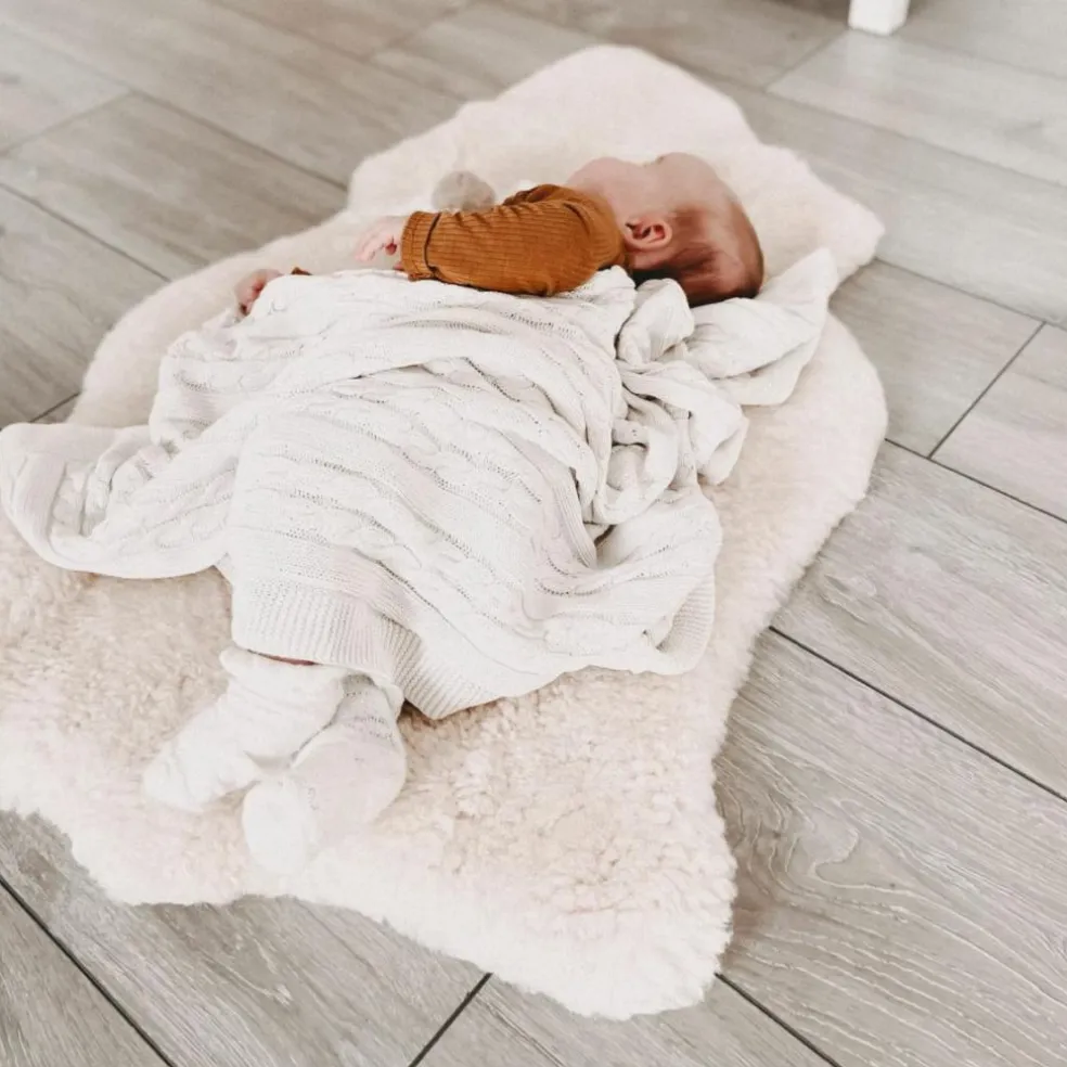 La peau d’agneau Mimosa écrue de la marque Kaiser est un réel régulateur de température naturel en toutes saisons : il y fait frais en été et chaud en hiver ! La peau d’agneau accompagne votre enfant partout, en poussette, au parc ou comme tapis de jeu.