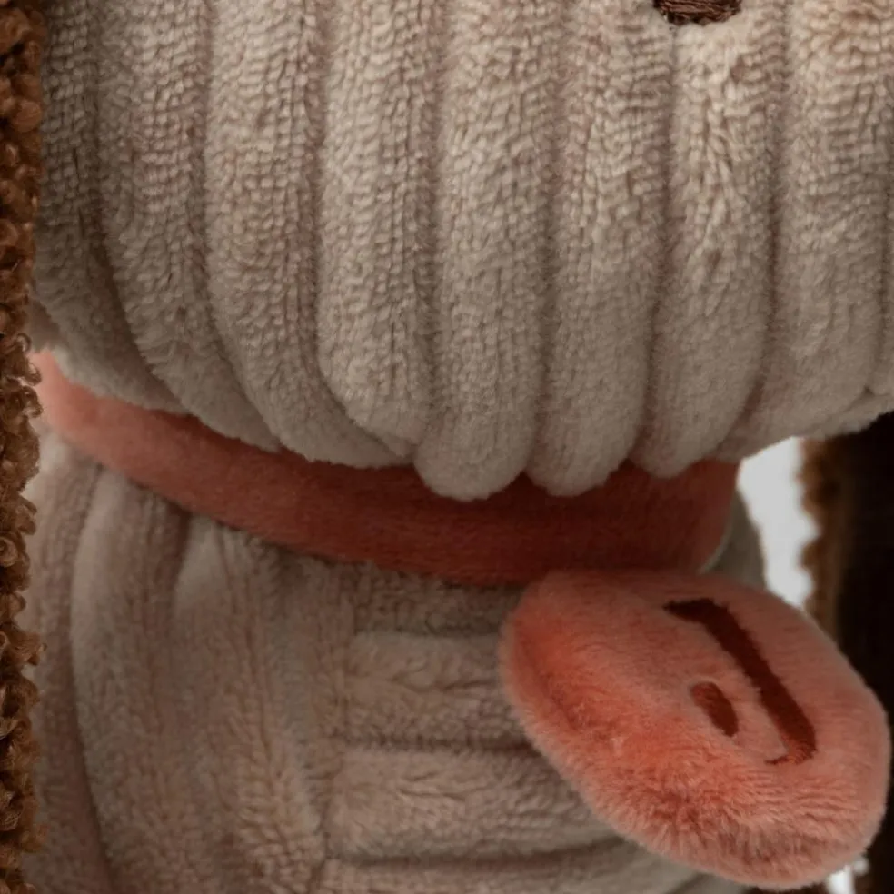 – Matières ultra douces : Corps en tissu côtelé et oreilles bouclées pour un toucher sensoriel réconfortant.