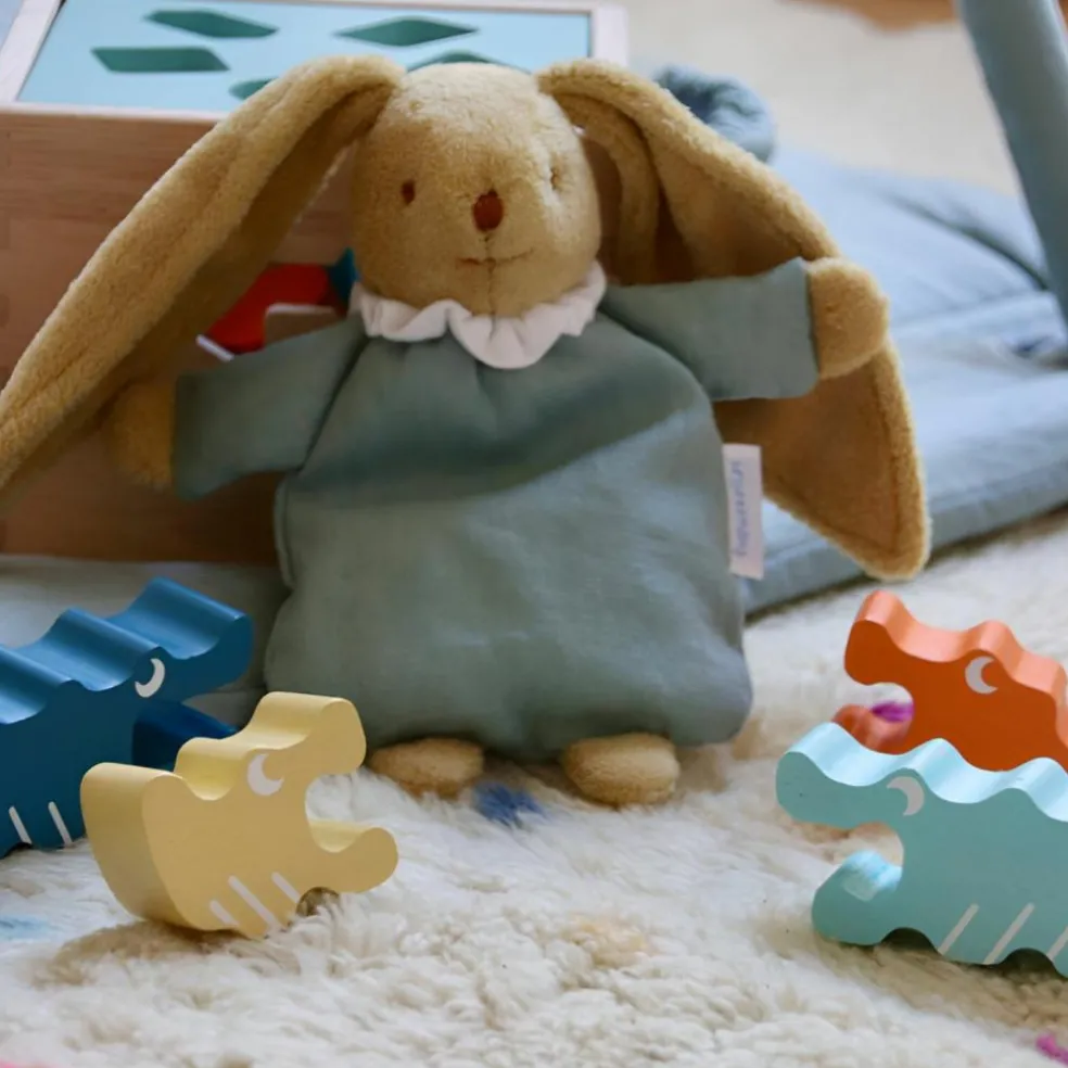 La peluche lapin nid d’ange en coton bio vert Céladon de la marque Trousselier est douce et réconfortante. Elle amusera les petits autant qu’elle les rassurera par sa seule présence. Une pochette de rangement en coton est incluse et permettra à votre enfant de ranger son doudou, sa sucette ou ses petites affaires.