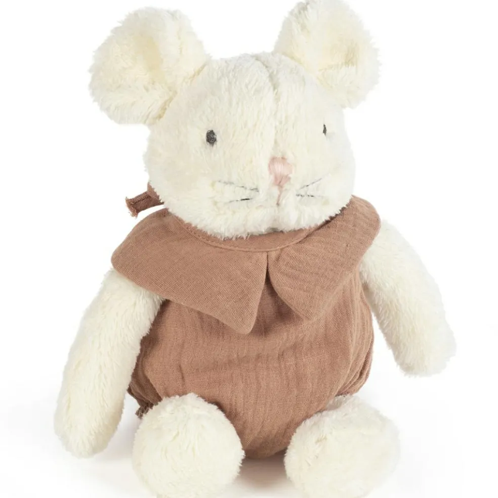 – Souris en peluche avec une robe Cannelle à pois pour bébé.