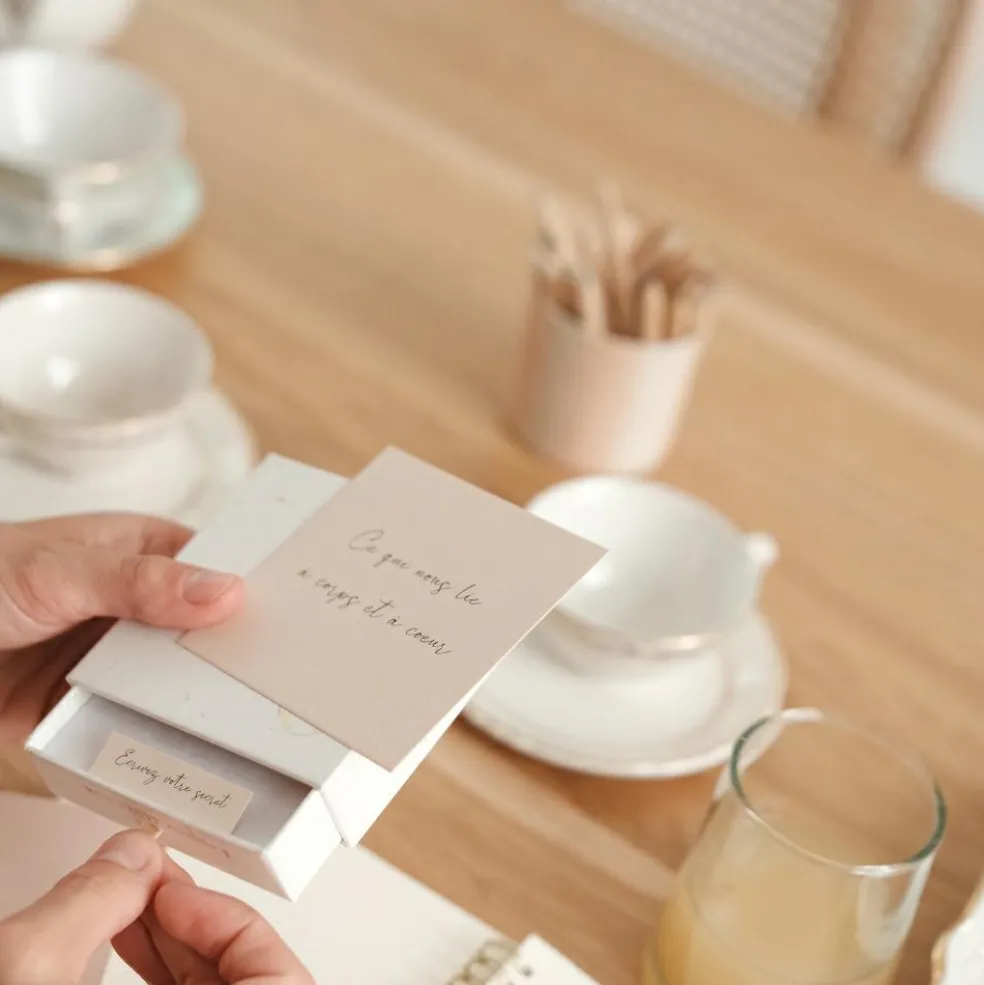 – Livré dans son écrin avec une note contenant 3 papiers détachables pour écrire ou réécrire votre secret.