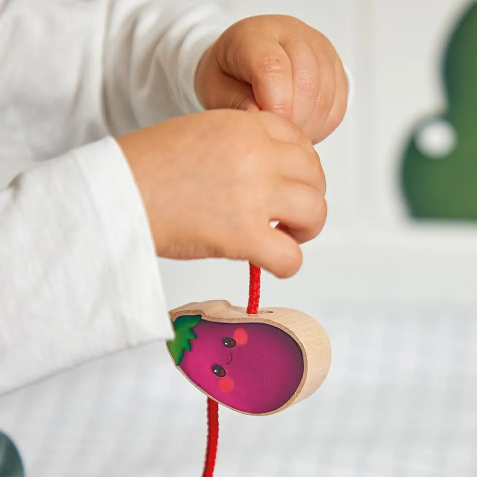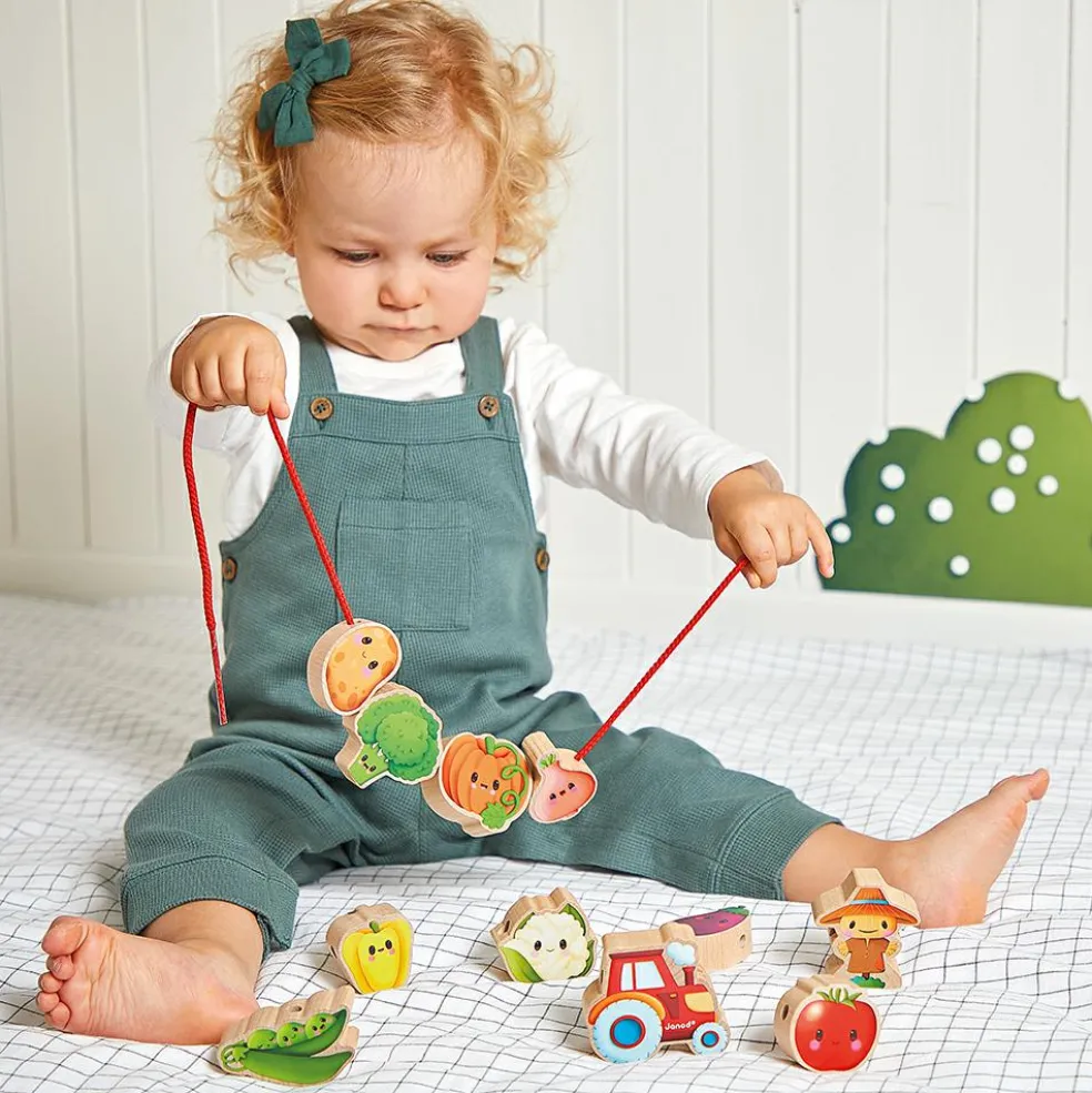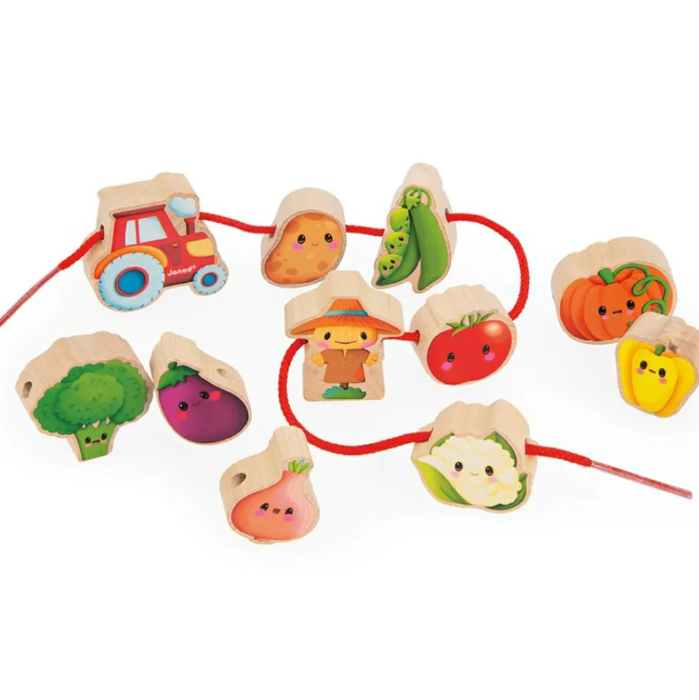 – 9 légumes, 1 tracteur, 1 épouvantail et 2 cordons.