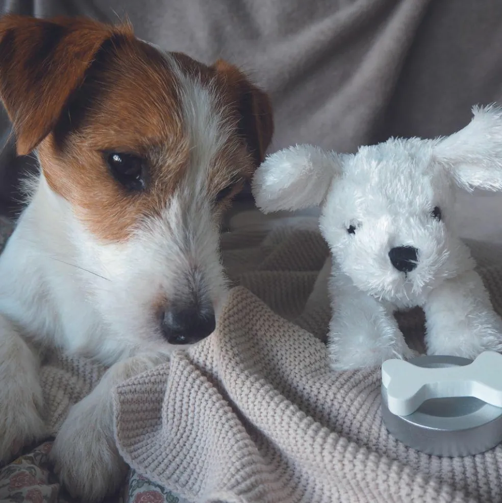 – 1 peluche chien avec sa laisse.
