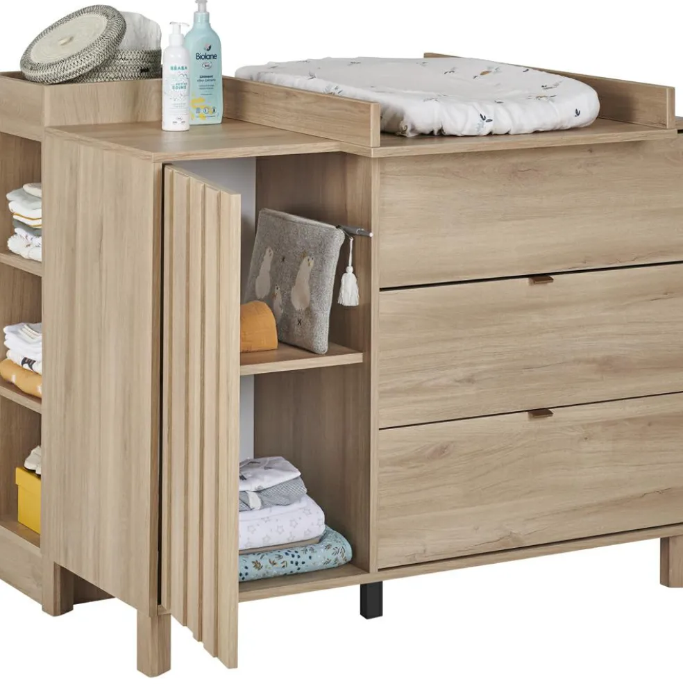 – Avec ce plan à langer à fixer directement sur la commode Calypso, inutile dinvestir dans un second meuble.