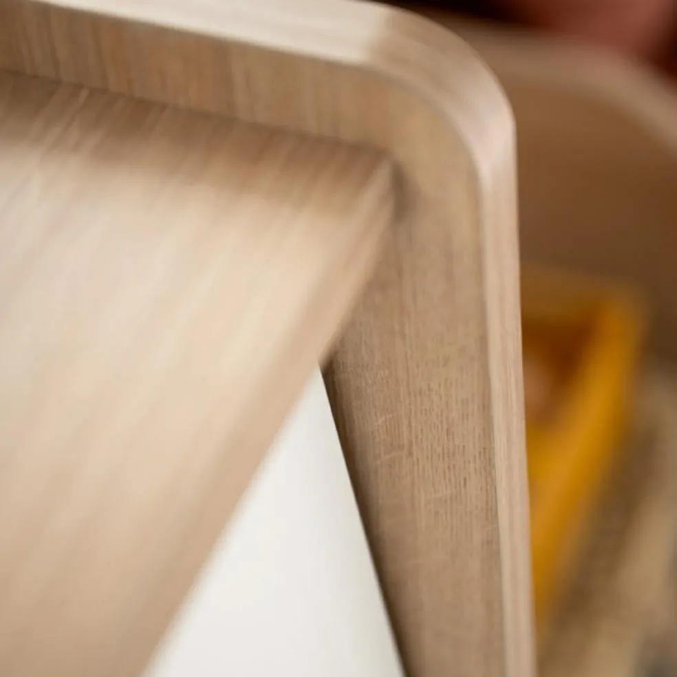– Joues et dessus en panneaux de particules mélaminés décor chêne miel, chants décor bois.