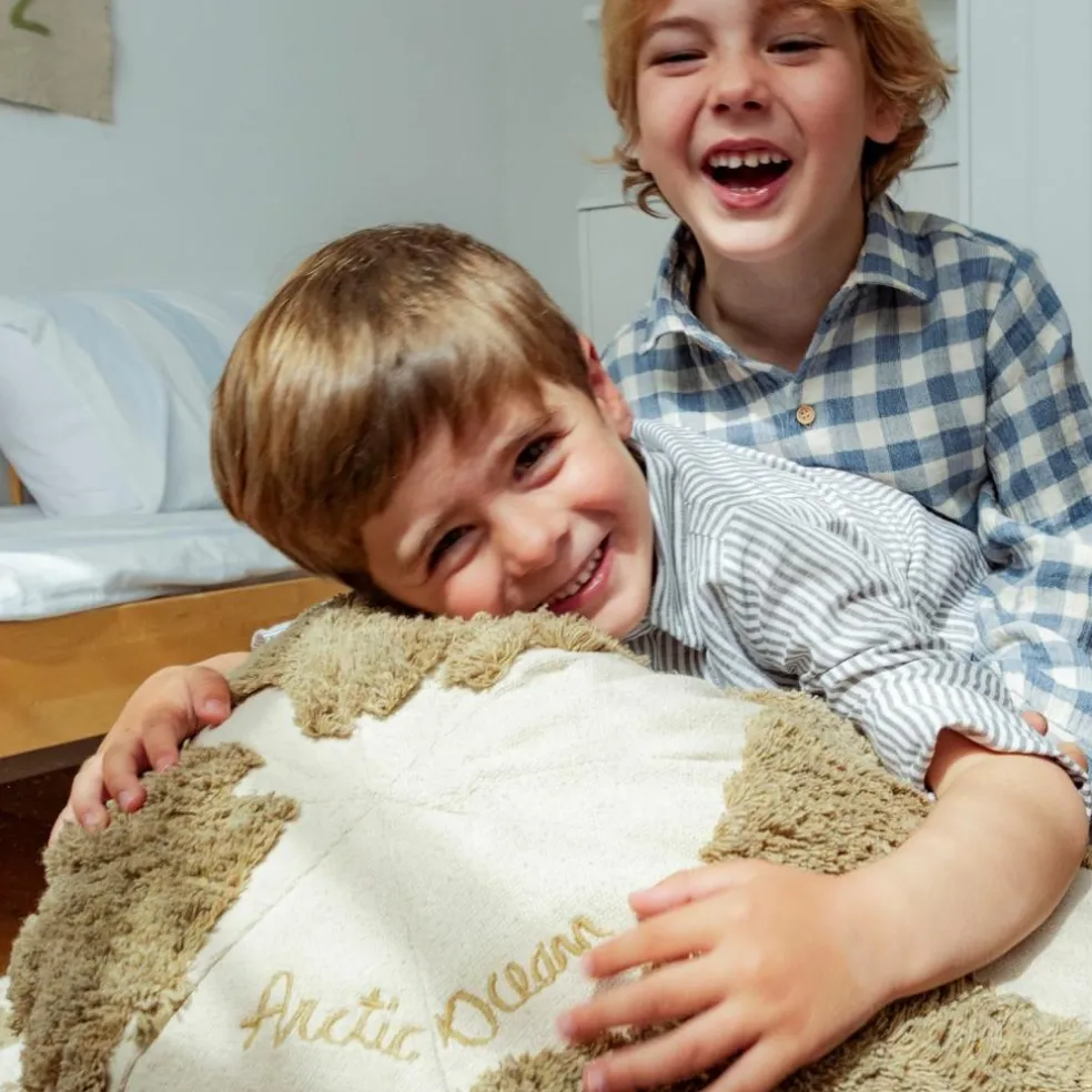 Sa surface douce et texturée, représentant la carte du monde, offre une belle expérience sensorielle pour les tout-petits. Ils pourront s’installer dessus pour lire, jouer ou simplement rêver de leurs prochaines aventures. Léger et facile à déplacer, il trouve sa place aussi bien dans une chambre d’enfant que dans un salon au style bohème ou naturel.