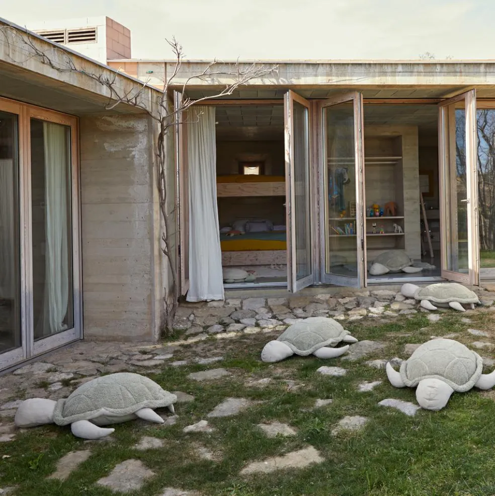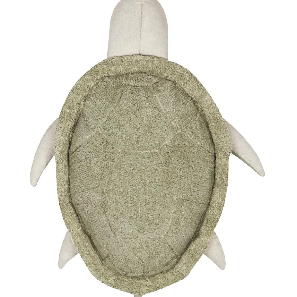 – Carapace en poils de coton doux vert olive, tuftée selon un motif symétrique.