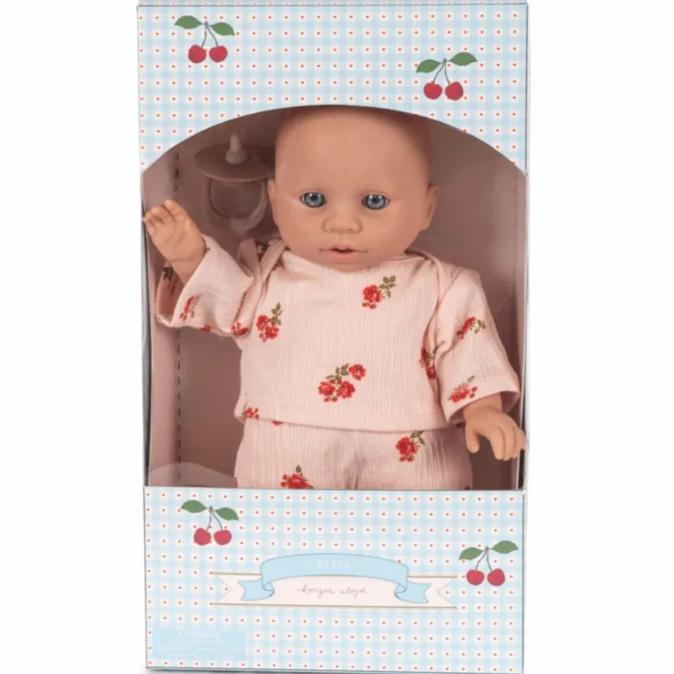 Avec son visage attendrissant, ses yeux profonds et expressifs et son adorable tenue fleurie, Elisa est bien plus qu’un simple jouet : c’est une véritable petite compagne de jeu, de câlins et d’imagination.