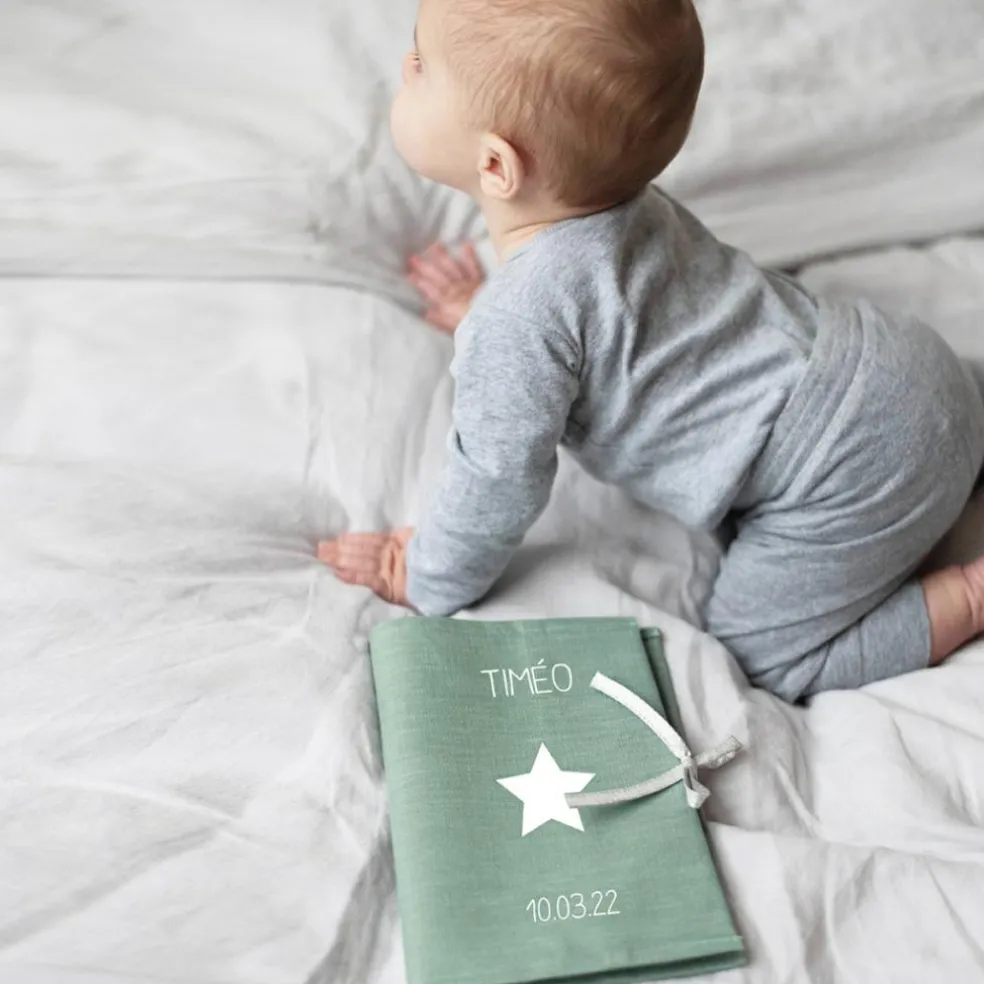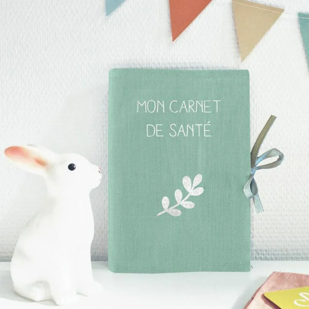 Protège carnet de santé vert d’eau (personnalisable)