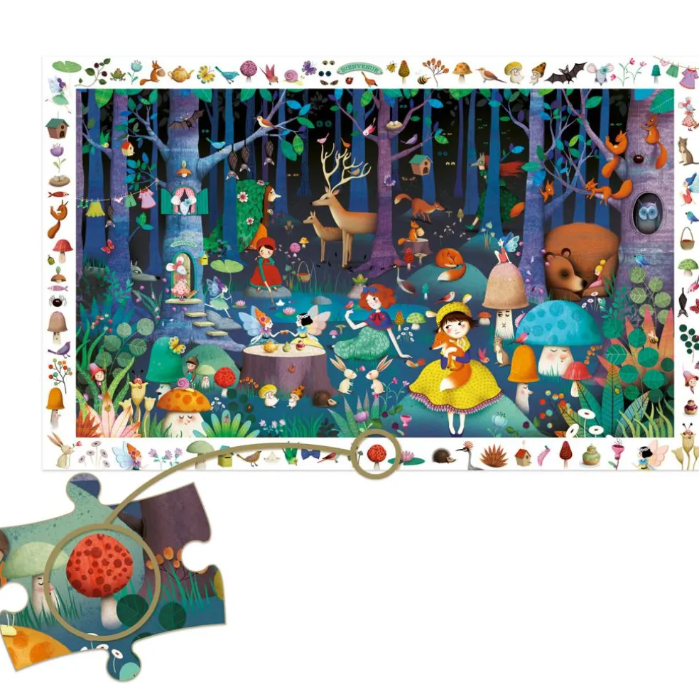 Le puzzle d’observation La forêt enchantée de la marque Djeco amusera votre enfant et développera son imagination et sa motricité. Après avoir reconstitué le puzzle, les petits pourront s’amuser à retrouver dans l’image centrale les éléments illustrés sur la frise.