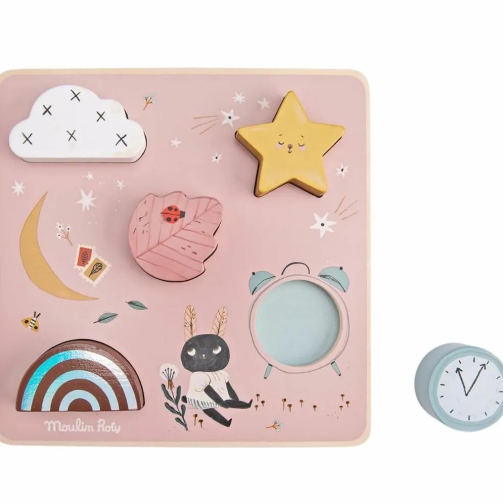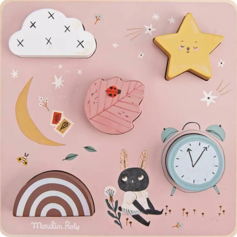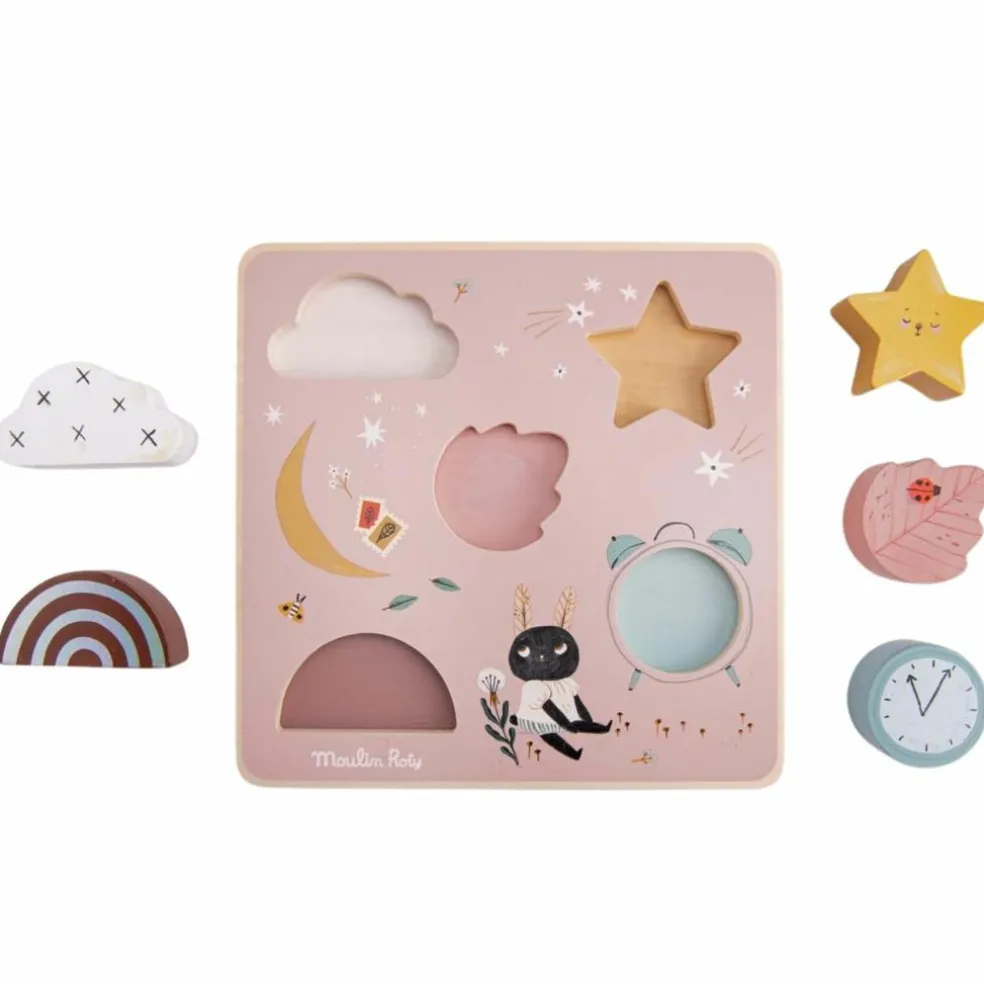 – Ce puzzle sensoriel, composé de 5 pièces encastrables de la collection Après la Pluie, est parfait pour découvrir les formes, les couleurs et les textures.
