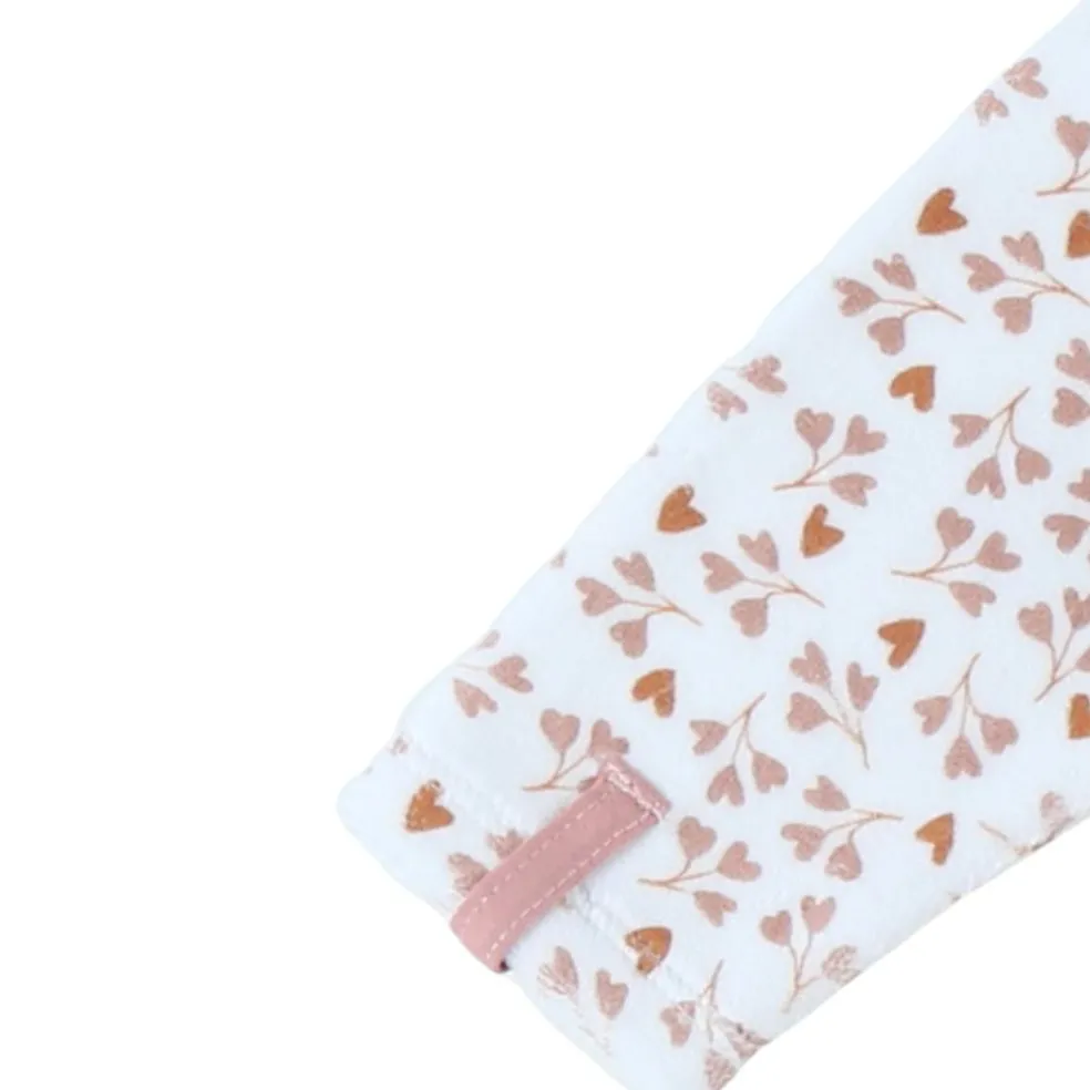 – Le pyjama est soigneusement confectionné avec un velours côtelé, un imprimé coeur, un élégant passepoil vieux-rose et une pression personnalisée arborant d’un coeur.