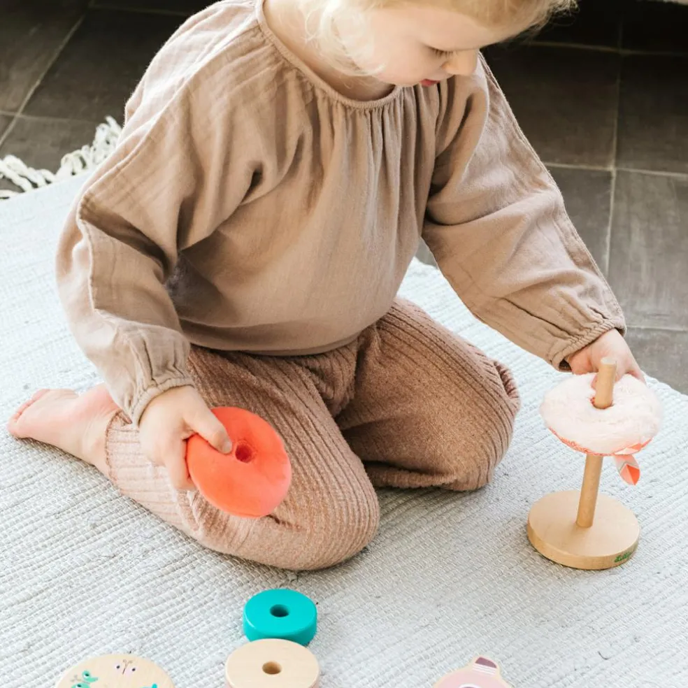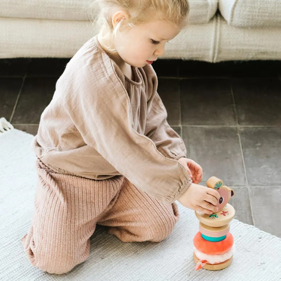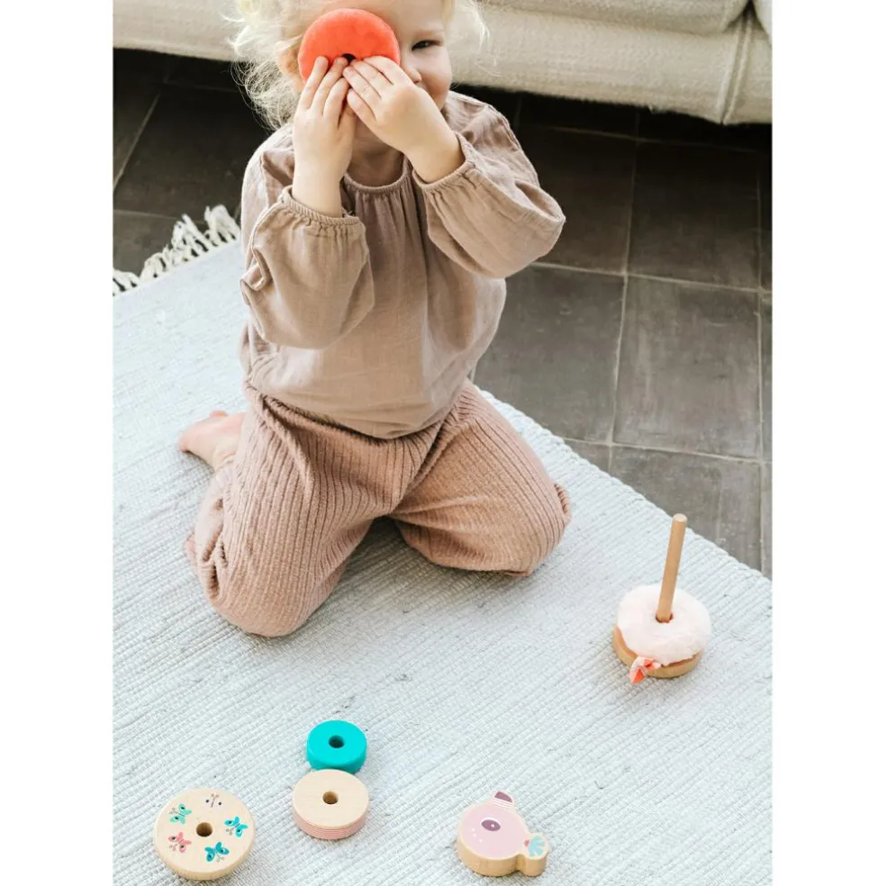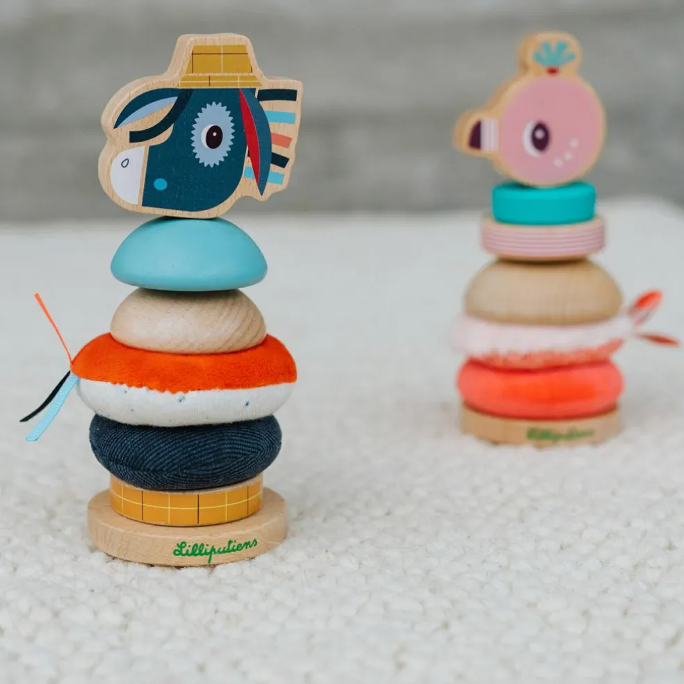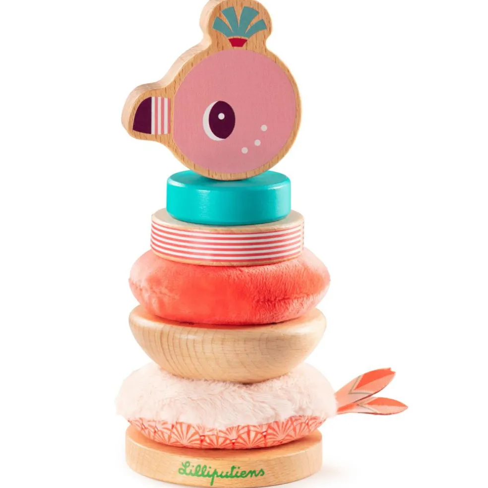 La pyramide à empiler Anaïs le flamant rose de la marque Lilliputiensstimule la logique et la préhension fine des tout-petits grâce à ses six éléments à empiler.