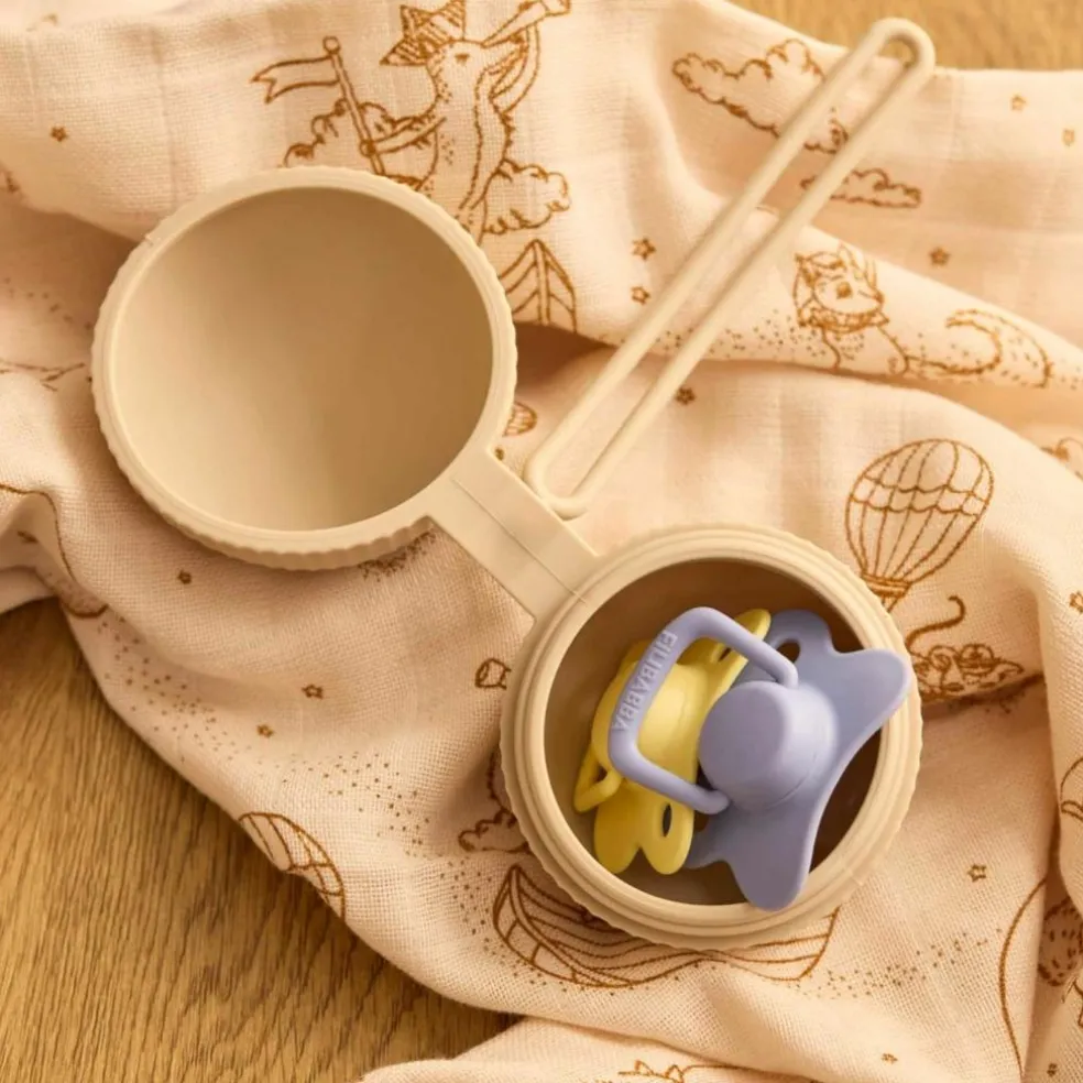 Alliant design minimaliste et praticité, ce range sucette en silicone est l’allié indispensable des parents actifs. Grâce à son format compact, il accueille jusqu’à 2 à 3 sucettes et se fixe facilement sur une poussette, un siège-auto ou un sac à langer grâce à sa boucle souple. Sa teinte douce et chaleureuse, s’harmonise avec tous les styles et accompagne les sorties du quotidien avec élégance.