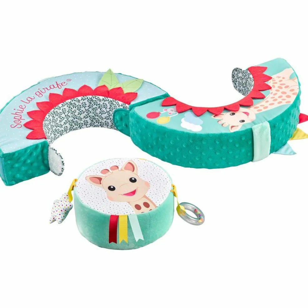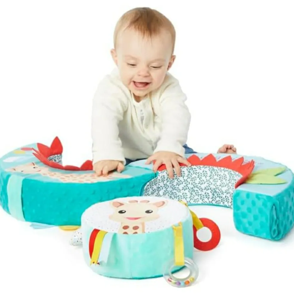 – Dès les premiers mois, bébé s’éveille et développe ses sens avec la roue centrale du module et ses nombreuses activités : papier froissé, grelot, miroir,…
