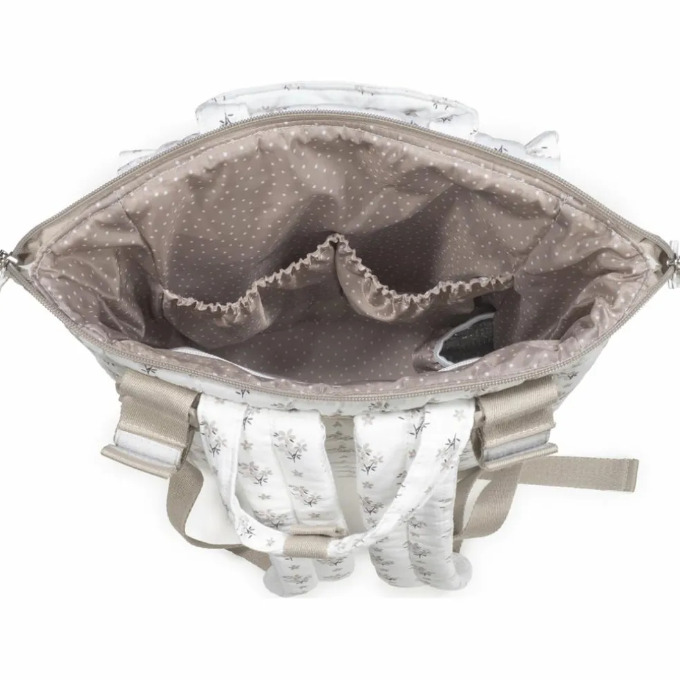 – Design élégant et discret : Imprimé floral sur fond crème, idéal pour les mamans et papas qui recherchent un accessoire à la fois utile et stylé.