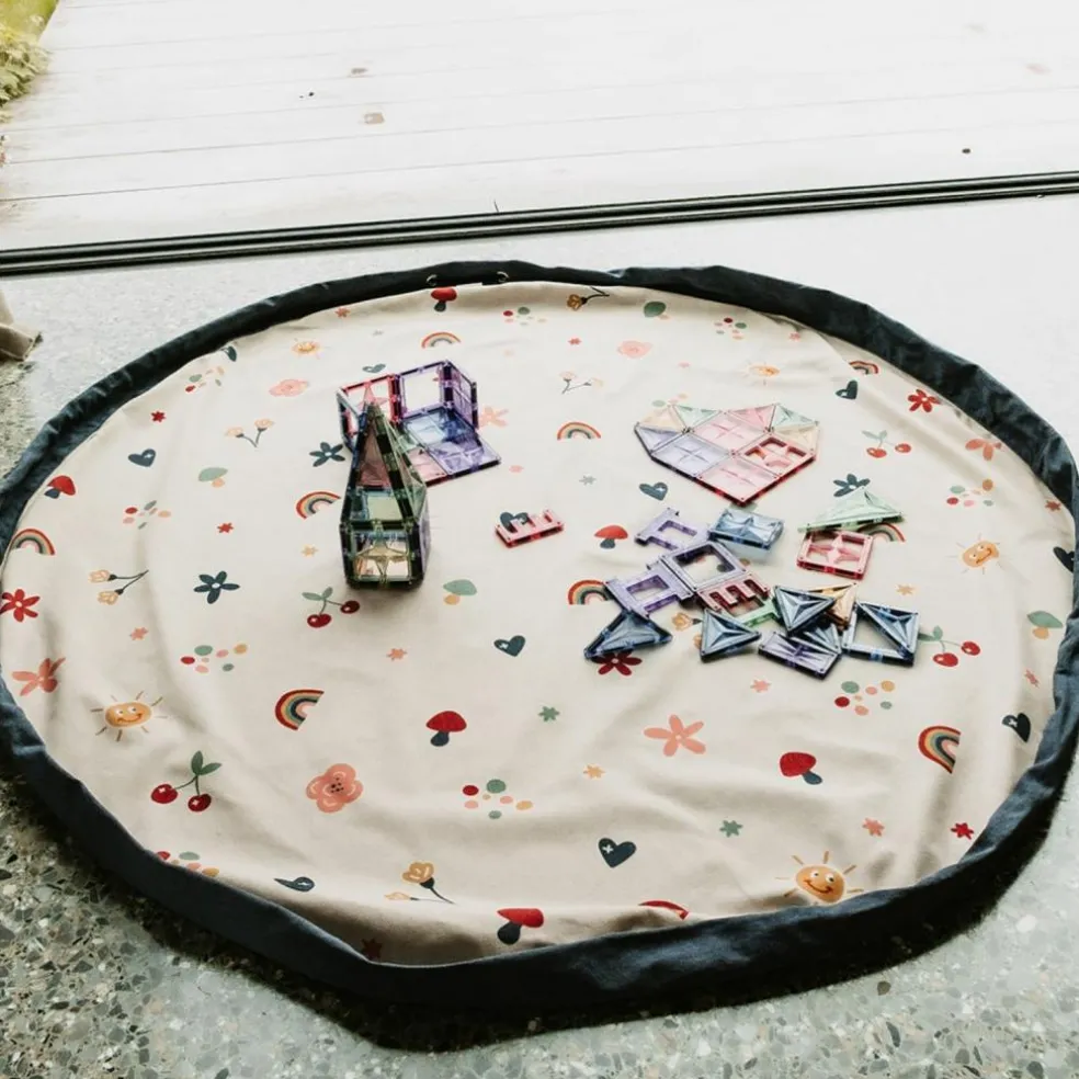 – 2 en 1 pratique : tapis de jeu coloré qui se transforme en sac de rangement en quelques secondes.