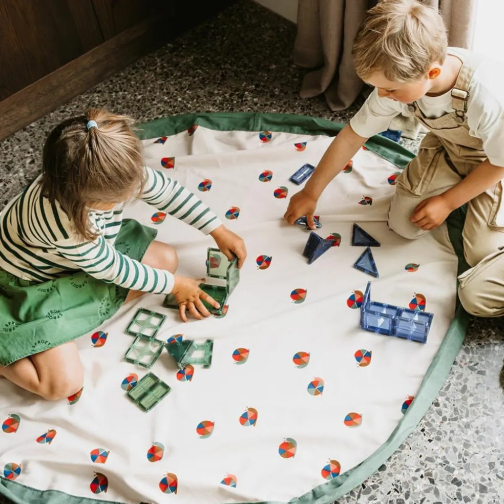 Avec son adorable motif d’escargot, ce sac malin apporte douceur et originalité dans la chambre de votre enfant. Déplié, il se transforme en un large tapis de jeu confortable où les petits explorateurs peuvent construire, inventer et rêver. Une fois l’aventure terminée, un simple geste suffit : tirez sur le cordon et le tapis se referme en sac de rangement pratique. Résultat : une pièce rangée rapidement, sans effort, et un quotidien plus serein.