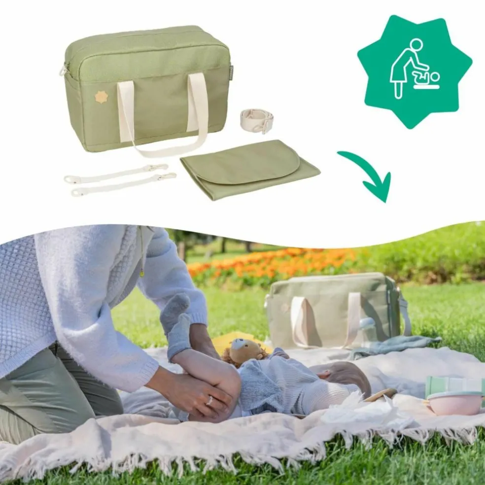 Faites de chaque sortie un moment stylé et pratique avec le Sac à langer Bowling Olive de Badabulle !