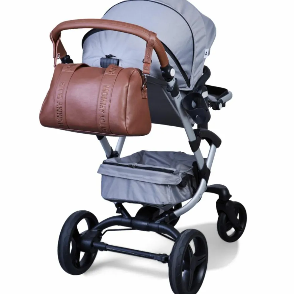 – Avec ses crochets pour la poussette et la ceinture d’épaule, le Mommy Club est conçu pour simplifier les déplacements avec bébé.