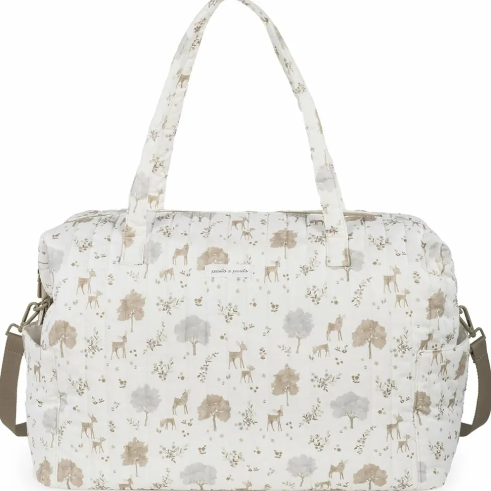 – Découvrez la combinaison parfaite de style et de praticité avec notre sac Nara XL fabriqué en toile de coton 100% avec un délicat imprimé de cerfs et d’arbres dans des tons neutres.